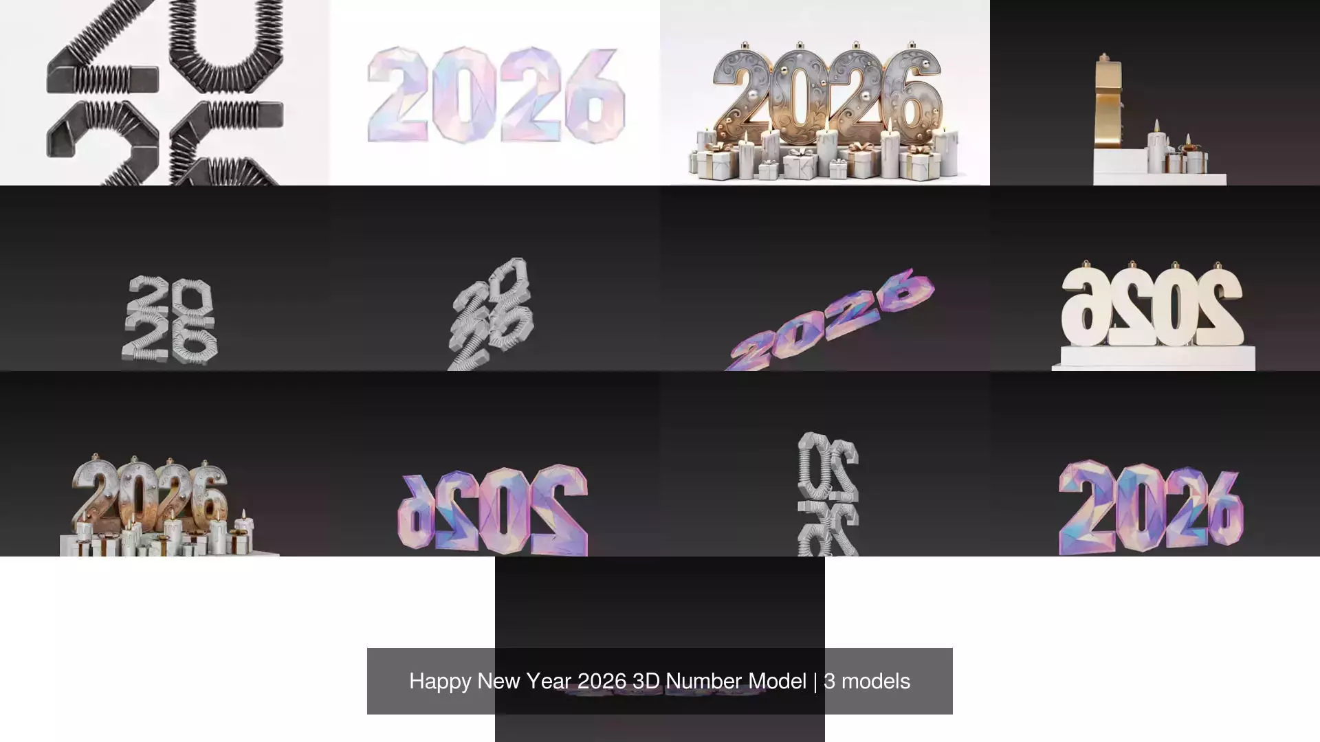 This Happy New Year 2026 number design is an Ai Generated non movable 3d model created for celebration visuals event decoration product presentation and seasonal digital content The modern numeric style makes it suitable for New Year themes party scenes social media visuals and festive branding This high quality model is ideal for both digital use and physical production The asset is available in STL GLB FBX USDZ MP4 OBJ PNG GIF JPG formats to ensure wide compatibility across rendering animation and printing workflows Users should adjust size before print to achieve accurate results This model is perfect for designers marketers content creators and 3d printing enthusiasts looking for a clean and modern New Year 2026 design