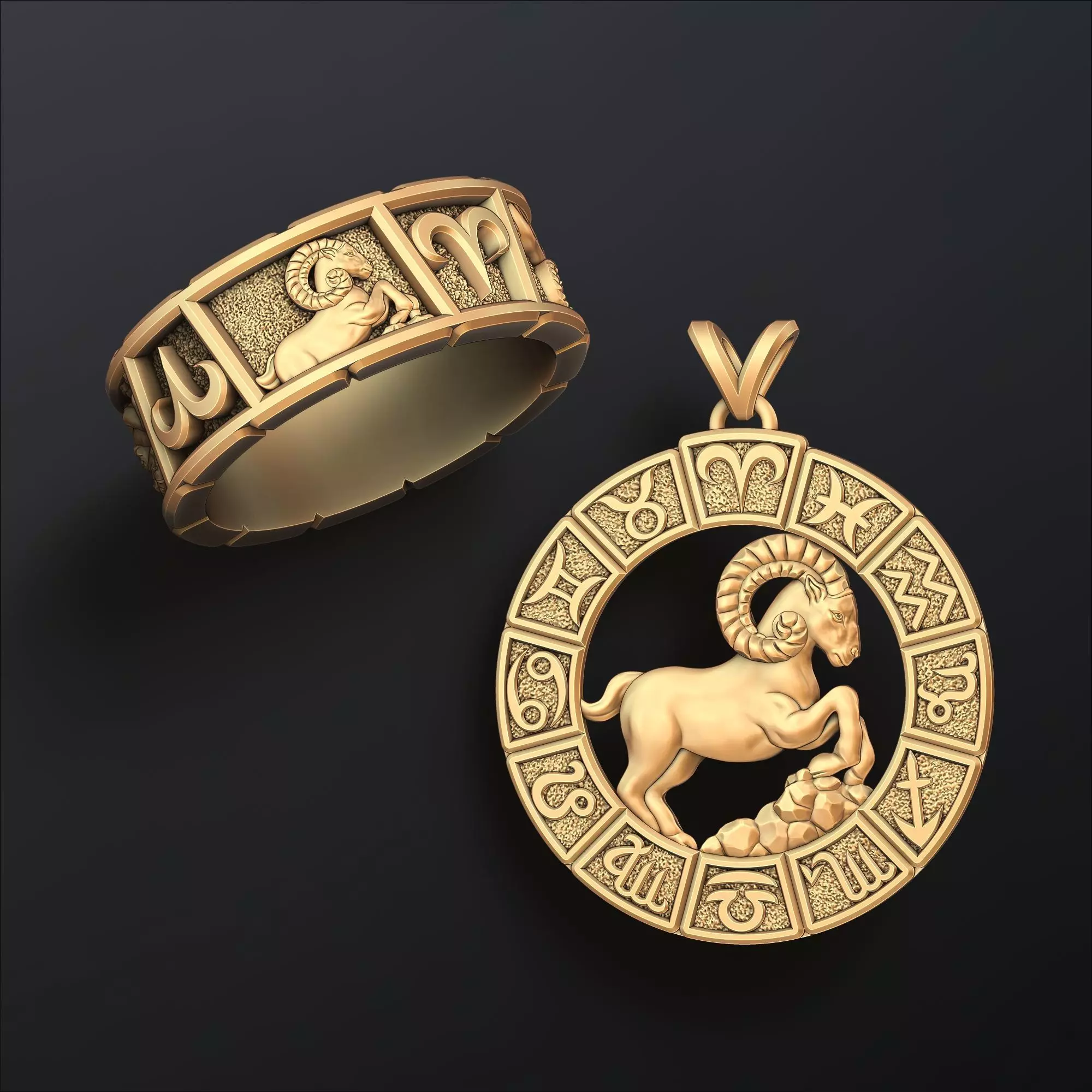 431.Horoscope Aries Ring Pendant v2 Collection 3D print models
