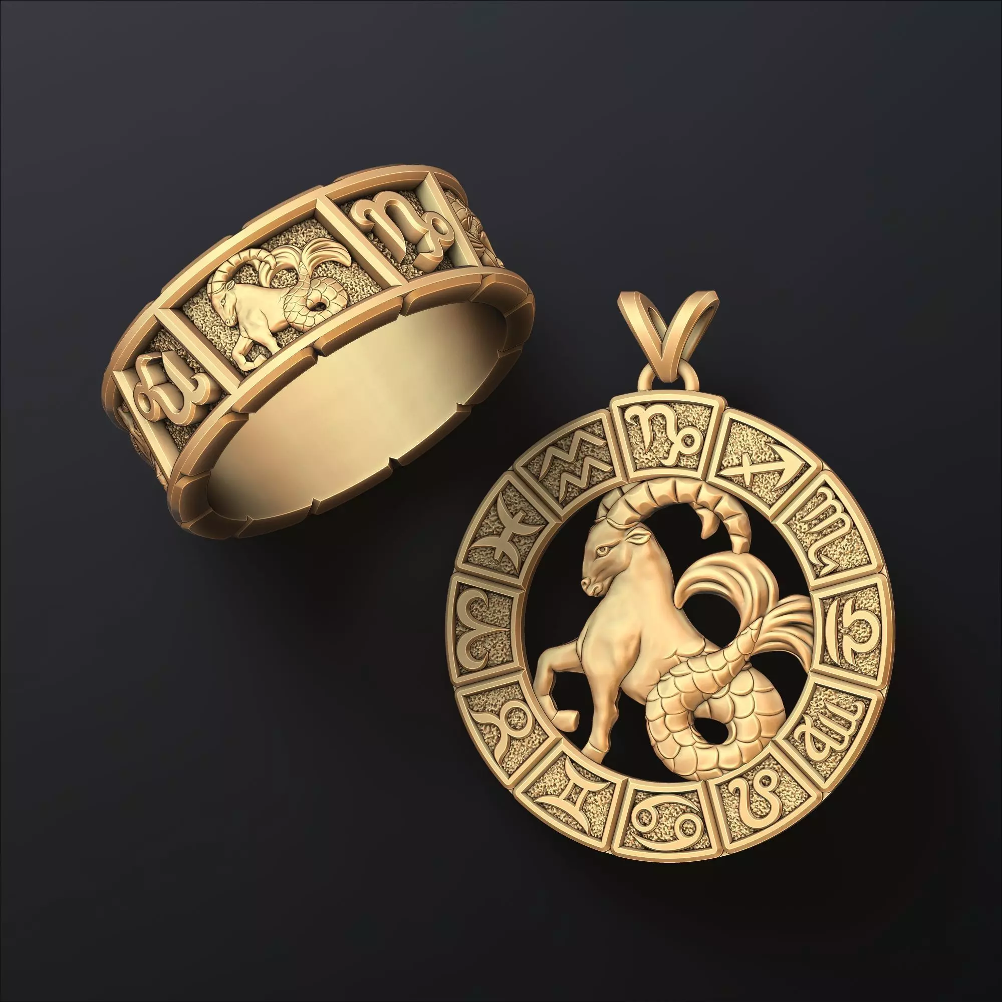 440.Horoscope Capricorn Ring Pendant v2 Collection 3D print models