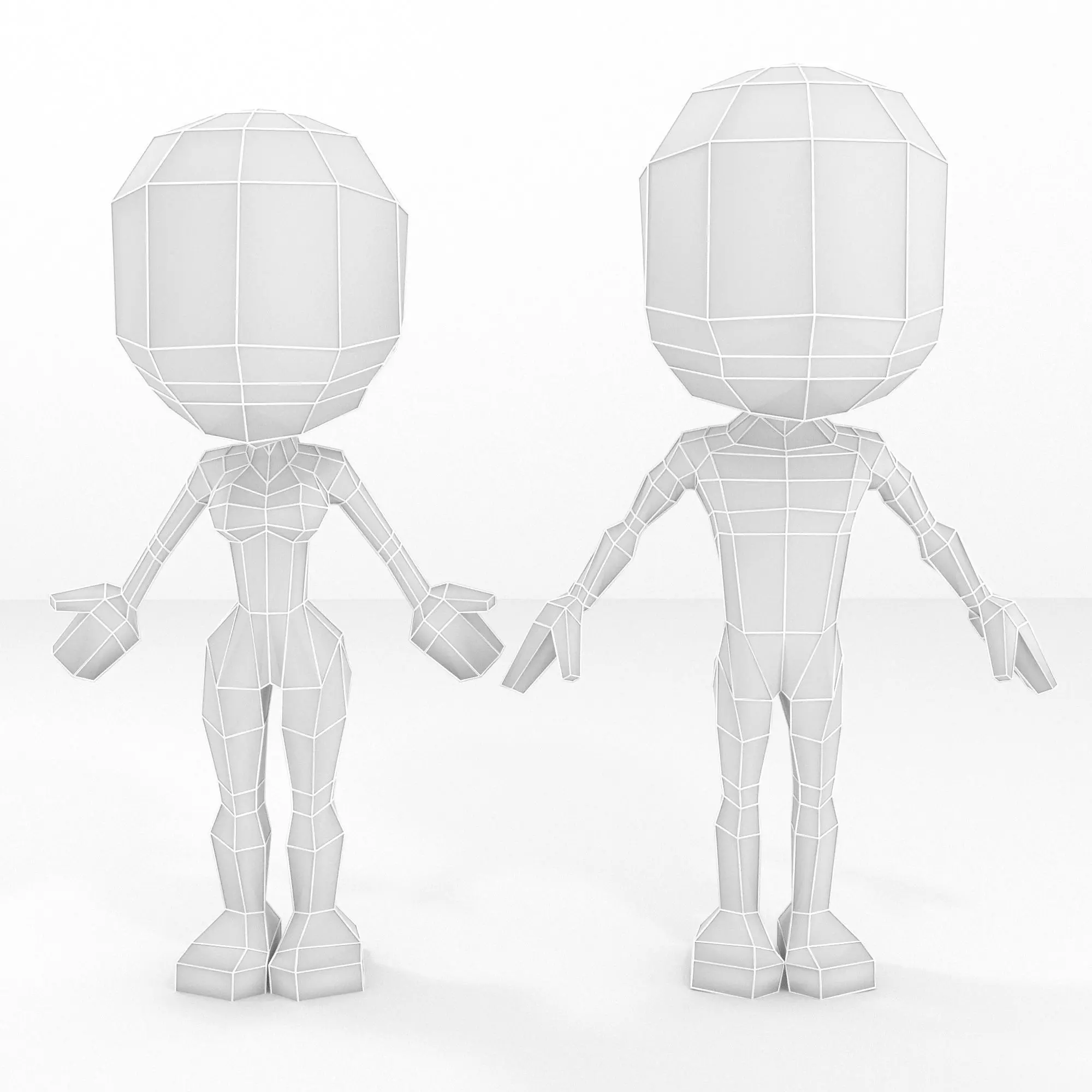 Base mesh set for a human female and male low poly fantasy character. Ideal as a base for your human cartoon style game characters. Cute style because of the big chibi head and general proportions. Very lowpoly for best performance in mobile or AR/VR projects.