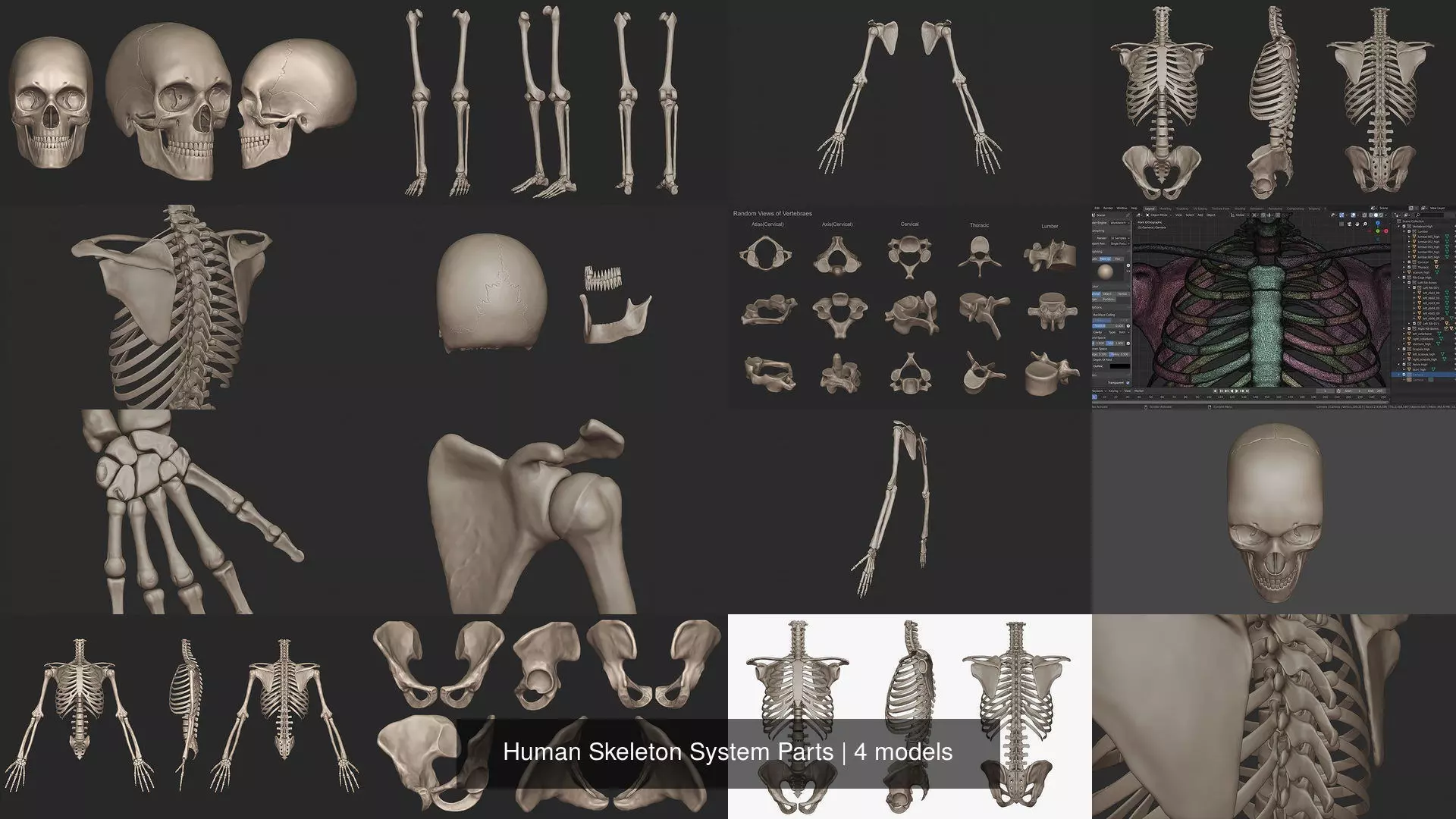Human Skeleton System Parts 3D Model Pack