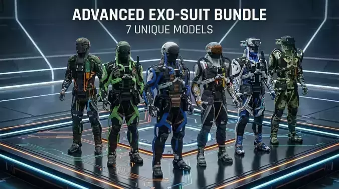 Deploy a complete mechanized army with this premium humanoid robot bundle. Features seven distinct, high-detail combat mechs with futuristic designs, advanced weaponry, and tactical variations. Each model is built with PBR textures, full articulation rigs, and modular components for sci-fi games, animations, and military projects.