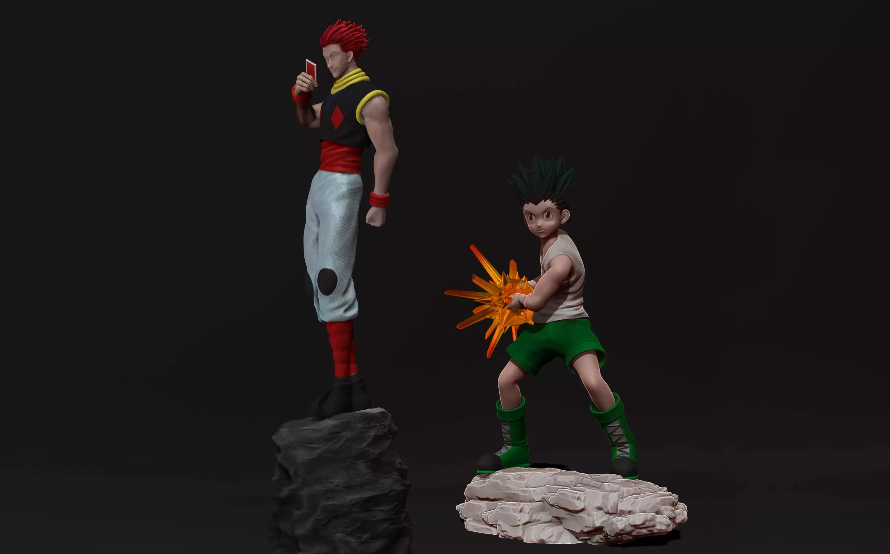 the model is available in a cut version with hisoka in multiple parts and one version with hisoka in one part, the rock is only available as one part.
