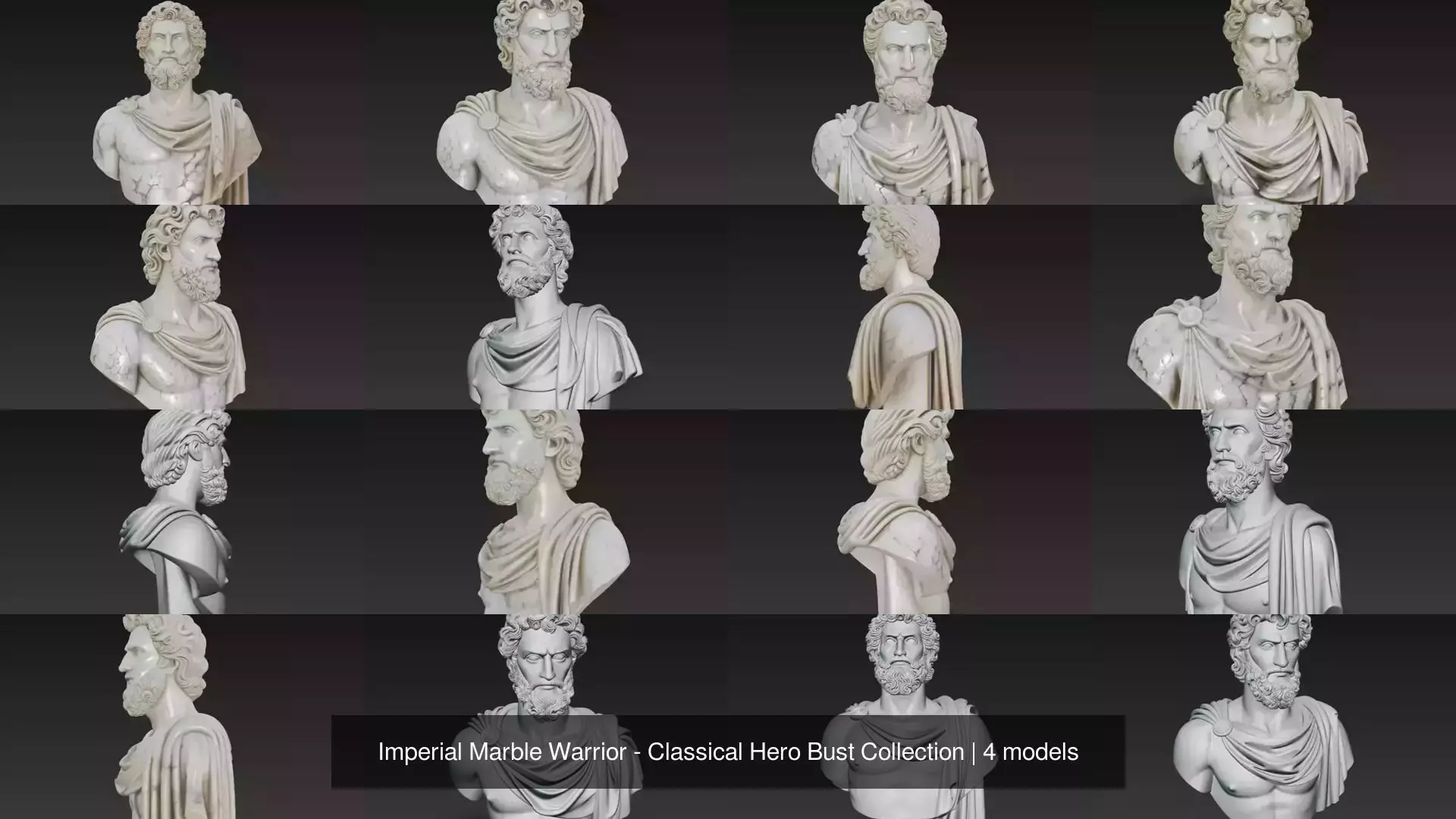 The Imperial Marble Warrior Collection unites four finely crafted classical Roman-style warrior busts, each sculpted with strong anatomy, noble expression, and historically inspired marble detailing.This curated set reflects the timeless grandeur of ancient Rome—heroes, nobles, guardians, and sentinels—perfect for architectural visualization, museum-style CGI renders, historical projects, or premium 3D printing.