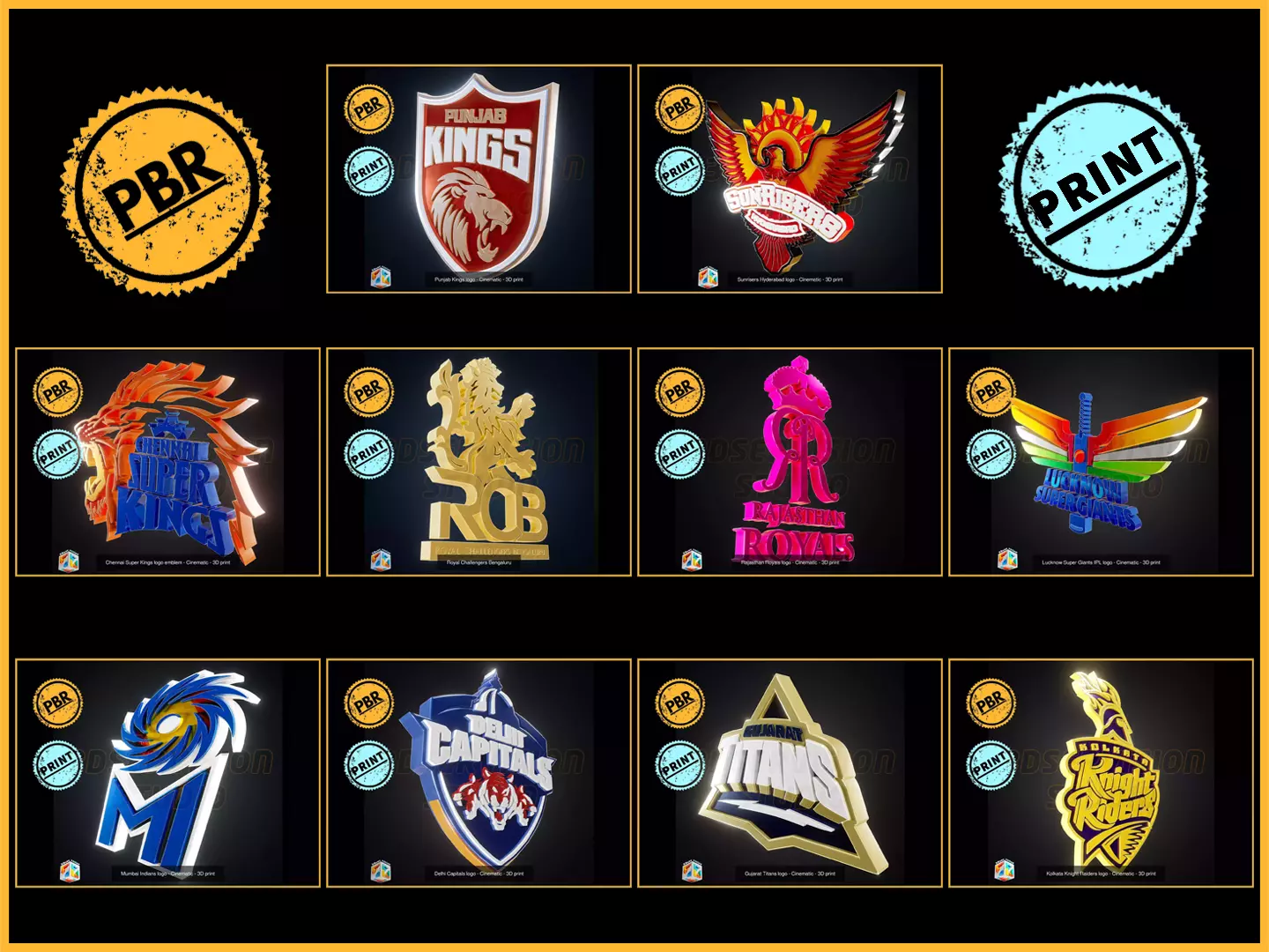 #limited MEGA sale...This premium pack includes the complete collection of IPL team logo emblems, presented in two professional versions: a PBR cinematic set for high-end rendering and a 3D-printable STL set prepared with solid, manifold geometry for clean slicing and accurate prints. Each emblem features clean topology, 4K PBR textures, and fully UV-unwrapped geometry for seamless use across any workflow.