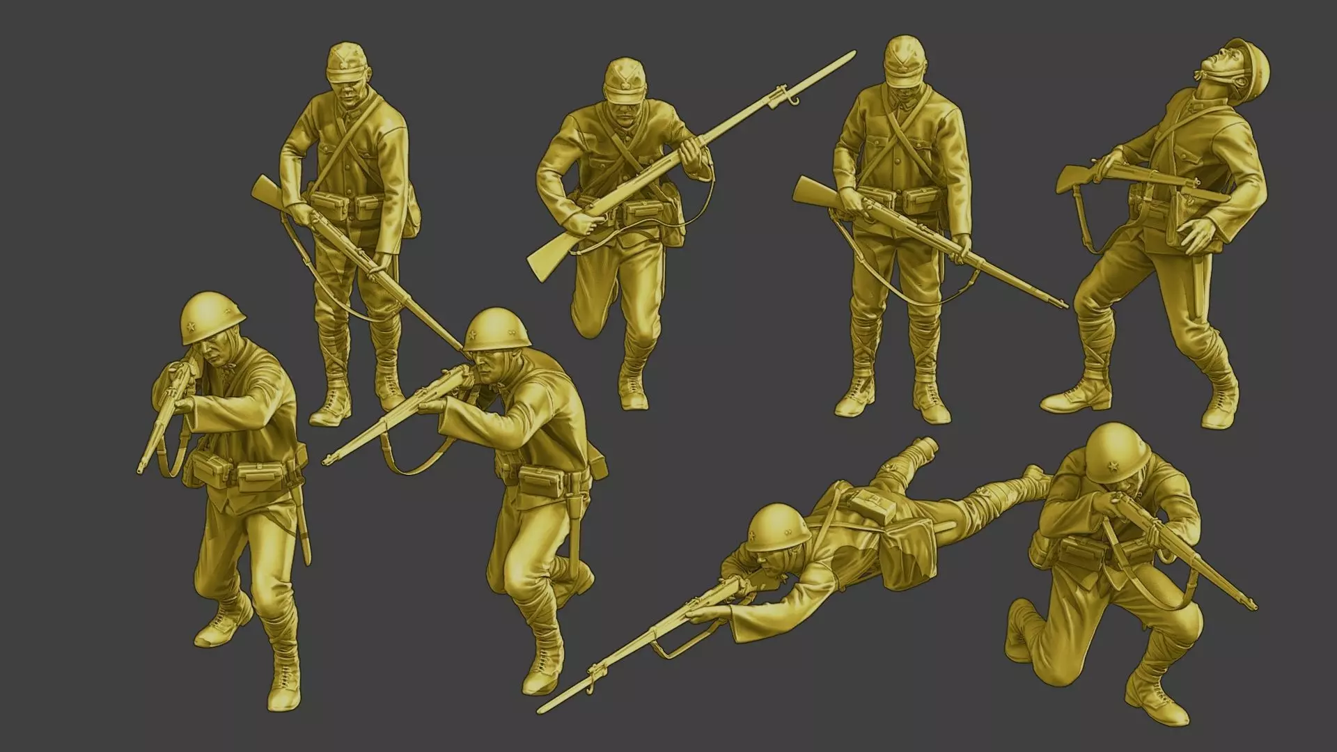 - Japanese soldier model with g0ns (Arisaka type 38) and objects. Soldiers for Pacific war(3d print model).