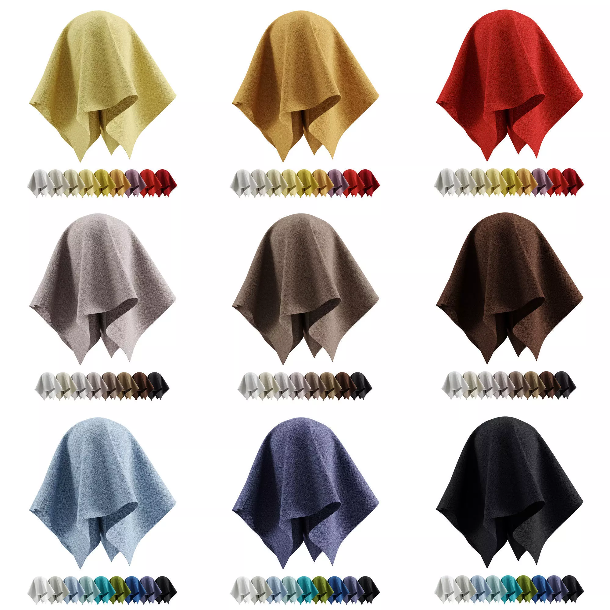 Materials include diffuse, normal, displacement, and folds bump maps