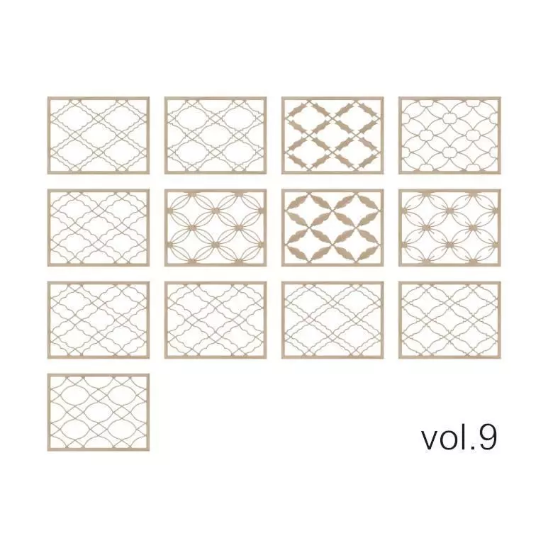 Japanese traditional Kumiko pattern. Because Japanese traditional unit Shakkanho 1bu=3mm, I designed in 3 or multiples of 3 as much as possible. Thickness 9mm. Marugatafutaebishi Kawaritakarabishi Yaeginnanbishi kawarimokkobishi Kawariginnanbishi Hishishippokagero Hanagatabishi Shippomiebishi Ginnanbishi Komochitakarabishi Hanagatamokkobishi Chochinbishi Kikugatamokko