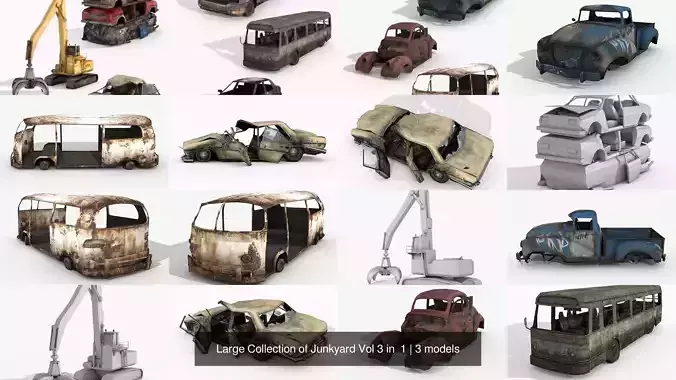 9 Lowpoly 3D models of Abandoned Vehicles (Junkyard Set Pack)