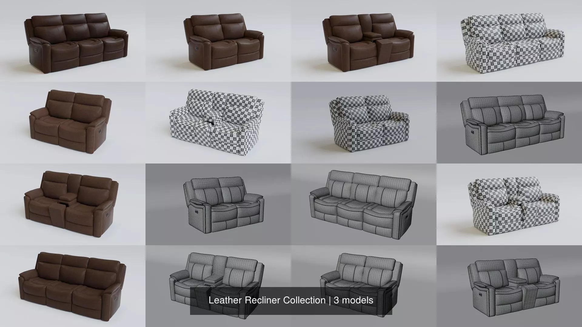 Leather Recliner Sofa (Lowpoly) Model with decent amount of details. Model is UV Unwrapped so you can apply any leather texture and it can be used for AR, VR and Game Projects.