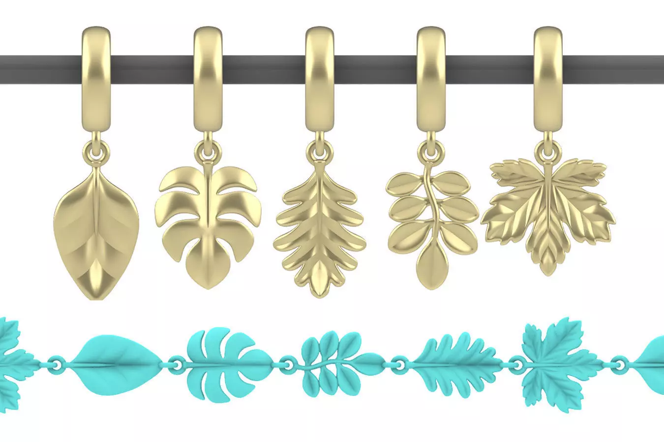 Leave Charm Set - 5 Leaves Charm Set 3D Model Pack