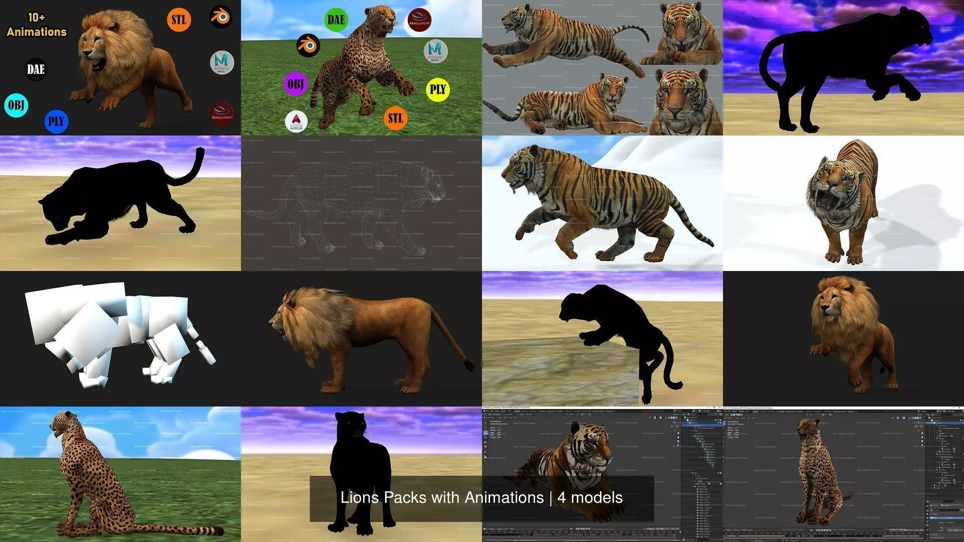 Lions mammals Realistic Character with Animations