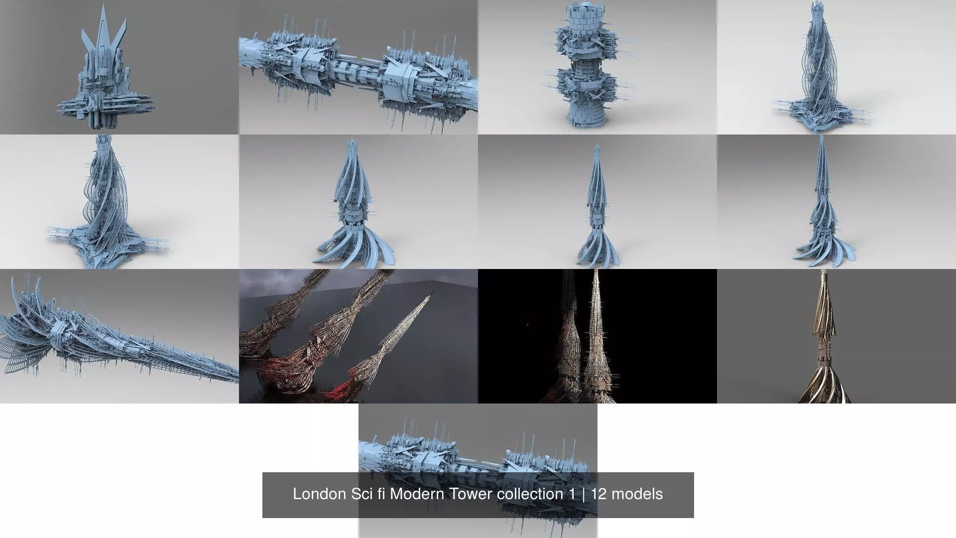 London Sci fi Modern Tower collection 1 3D Model Pack