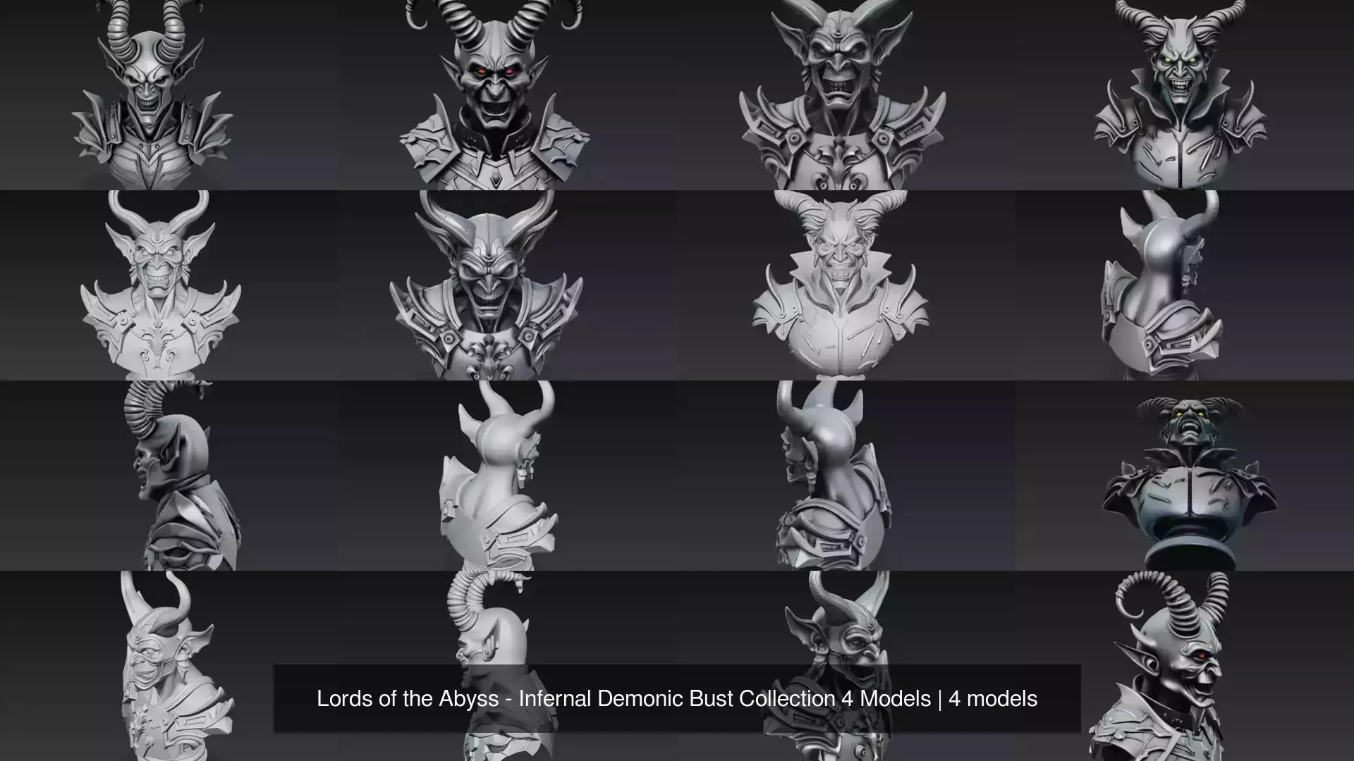 Unleash the full power of darkness with the Lords of the Abyss, a premium 4-model collection featuring the most fearsome demonic commanders ever sculpted.Each bust captures a different manifestation of infernal rule — from the regal Hell Duke to the savage Hellborne Warlord, the armored Hellforged Overlord, and the sinister Infernal Commander.