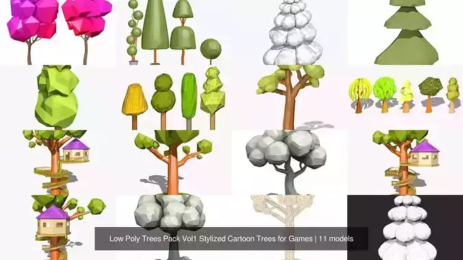 Features:Multiple unique low poly tree modelsStylized / cartoon aestheticGame-ready geometryPerfect for environments, landscapes, and world-buildingRoyalty-free license