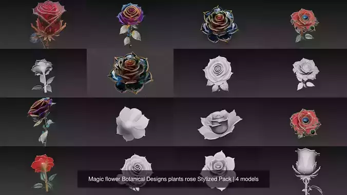 Magic flower Botanical Designs plants rose Stylized Pack