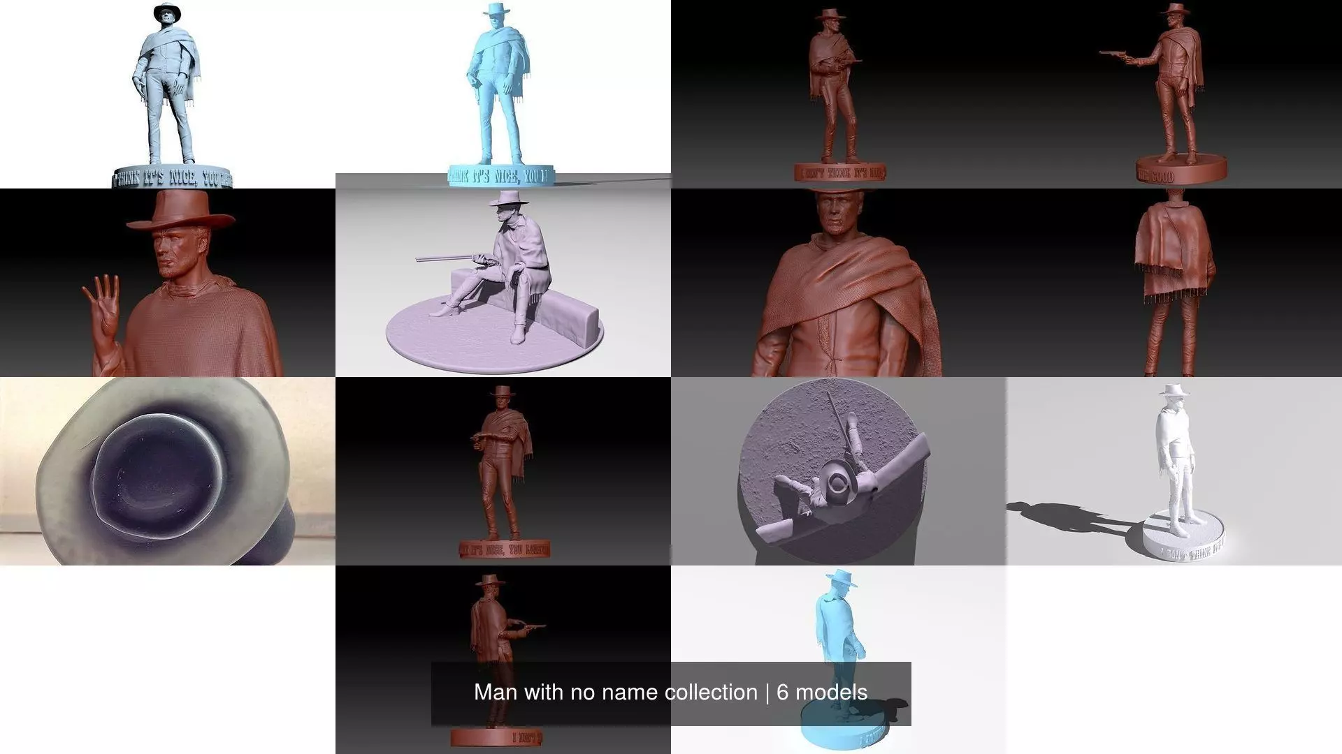 Six models of Man with no name for printing. Formats that are included: 3mf,stl,obj,max and ztl. There are low poly versions and bust versions included