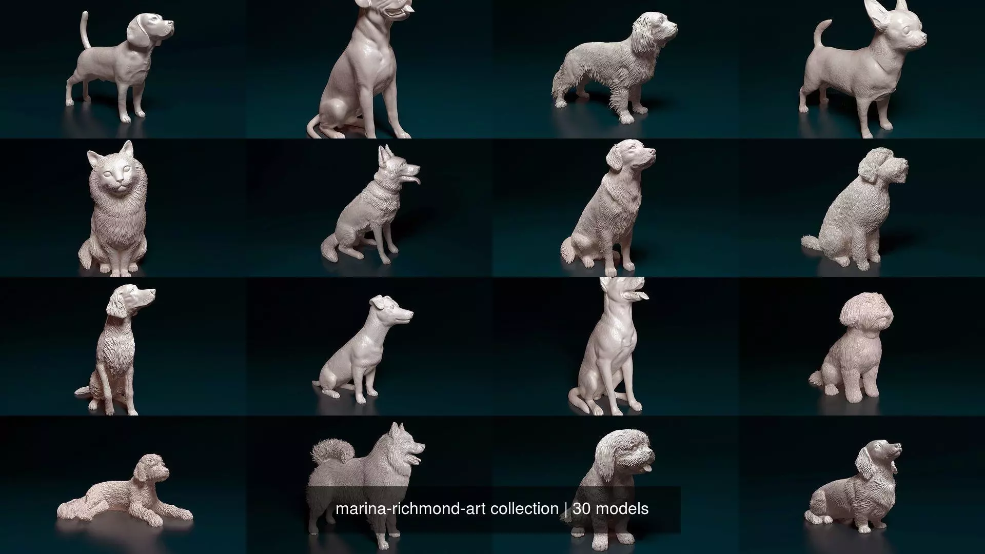 Set of 30 3D print dog models