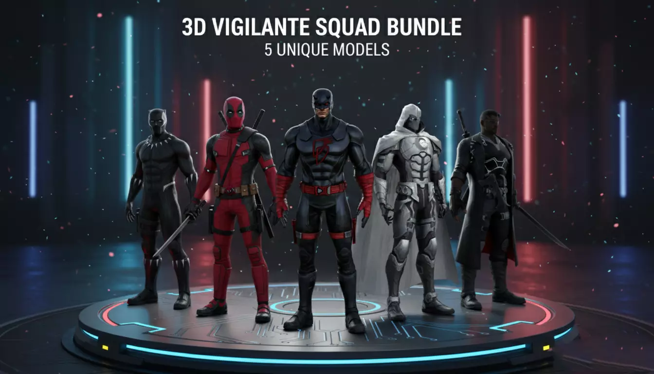 Command Marvel's edgiest heroes with this premium dark superhero bundle. Features five iconic characters from the darker corners of the Marvel Universe. Each model is crafted with 4K PBR textures, full animation rigs, and signature weapons/gear for games, animations, and gritty superhero projects.