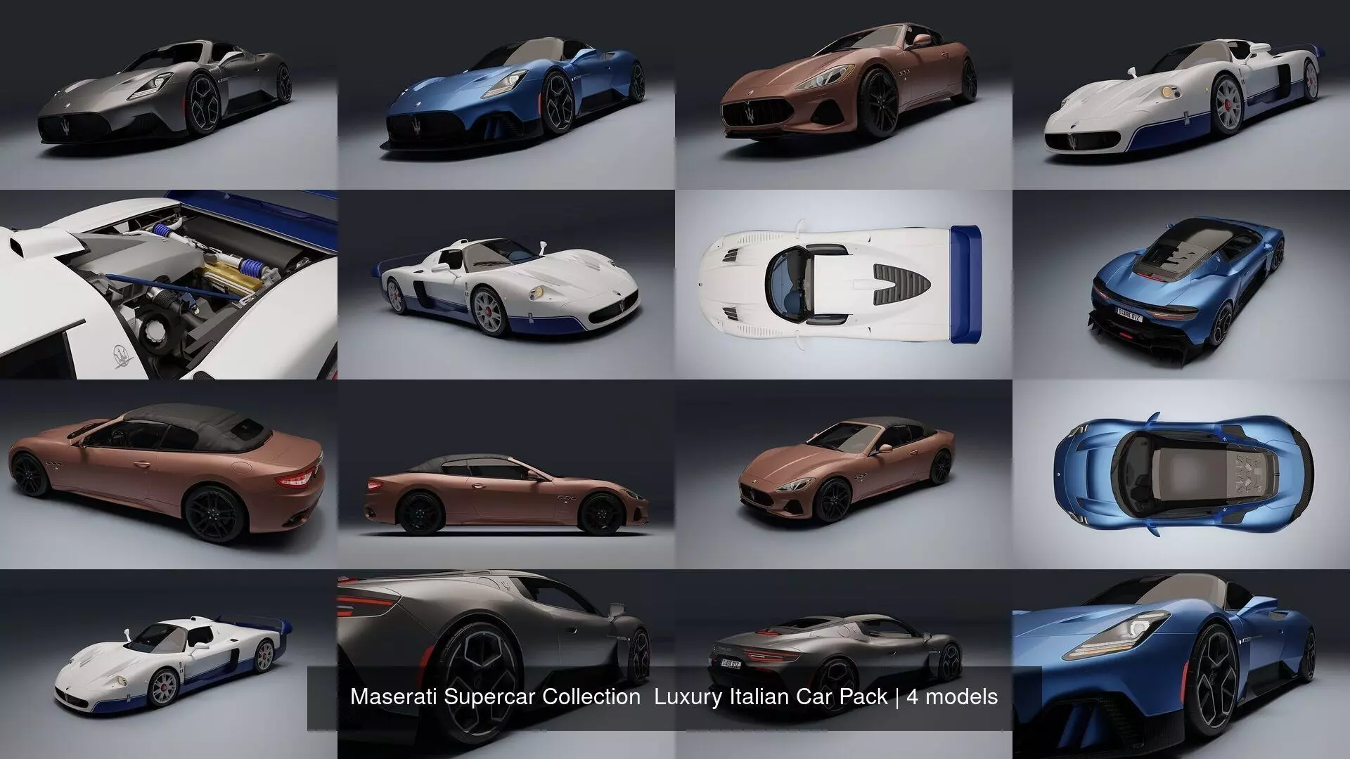 Drive elegance with this Maserati Pack: MC12, MC20, MC20 Modified Supercar, GranCabrio.Perfect for high-end CG, film or games.