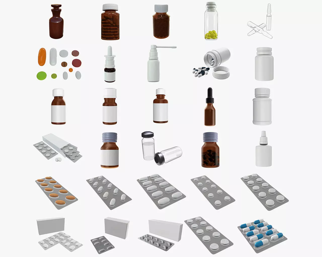 mock up glass plastic bottles pills blisters medicine 3D Model Pack