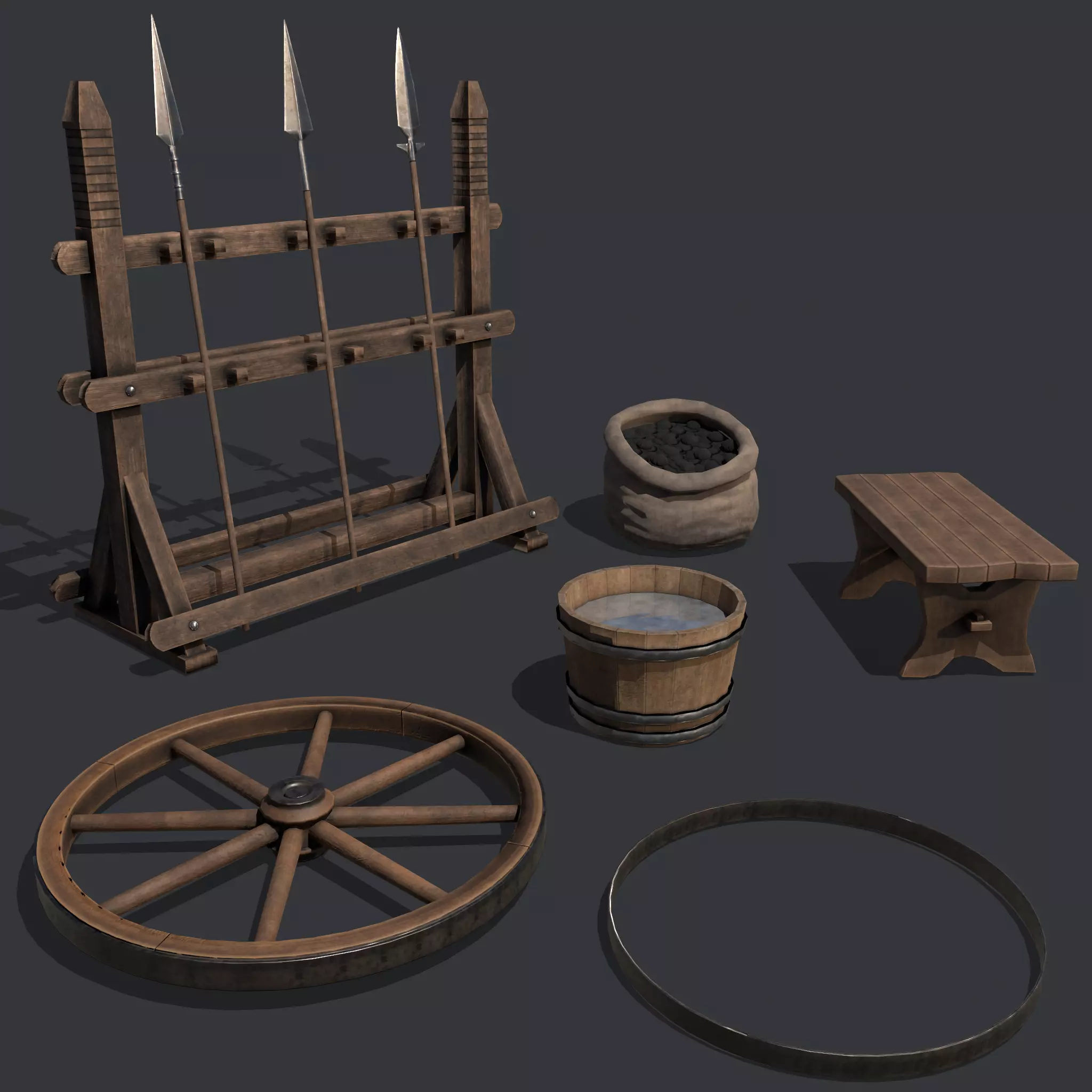 Medieval Blacksmith Items - 5 -3D Models PBR Texture available in 4096 x 4096 Maps include : Basecolor, Normal, Roughness, Height. All Preview renders were done Marmoset Toolbag 4. To see each individual model's Marmoset Viewer, See attached Model links. Each Model can be purchased on it's own. Scaled to real world scale. Customer Service Guaranteed. From the Creators at Get Dead Entertainment. Please like and Rate! Follow us on FaceBook and Instagram to keep updated on all our newest models.