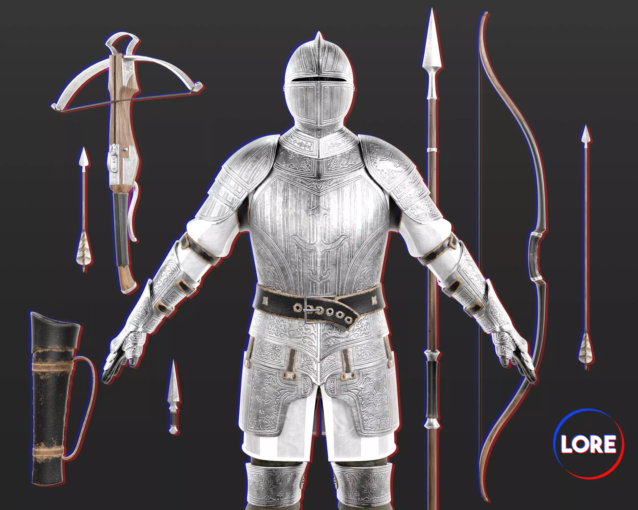 - Armor, Bow + Arrow & Quiver, Crossbow + Bolt, Spear, and Throwing Knife