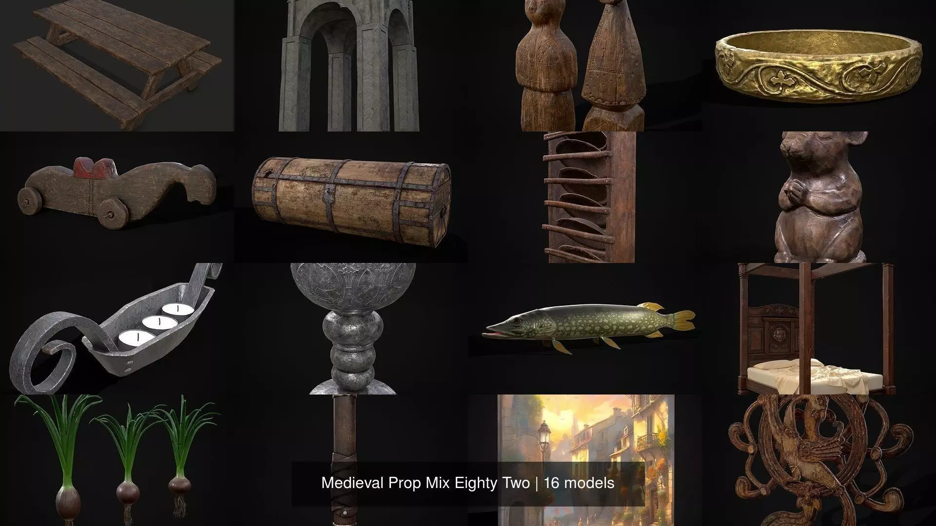 Medieval Prop Mix Eighty Two - 3D Model Files Include FBX and OBJ. Includes PBR Texture in 4096 x 4096. - Maps include : Basecolor, Normal, Roughness, Height and Metallic. Detail Normals included. All Preview renders were done Marmoset Toolbag 4. Scaled to real world scale. Customer Service Guaranteed. From the Creators at Get Dead Entertainment. Please like and Rate! Follow us on FaceBook and Instagram to keep updated on all our newest models. Model can be used for any purpose except resale or redistribution of the asset if not used in a game, commercial or media project.