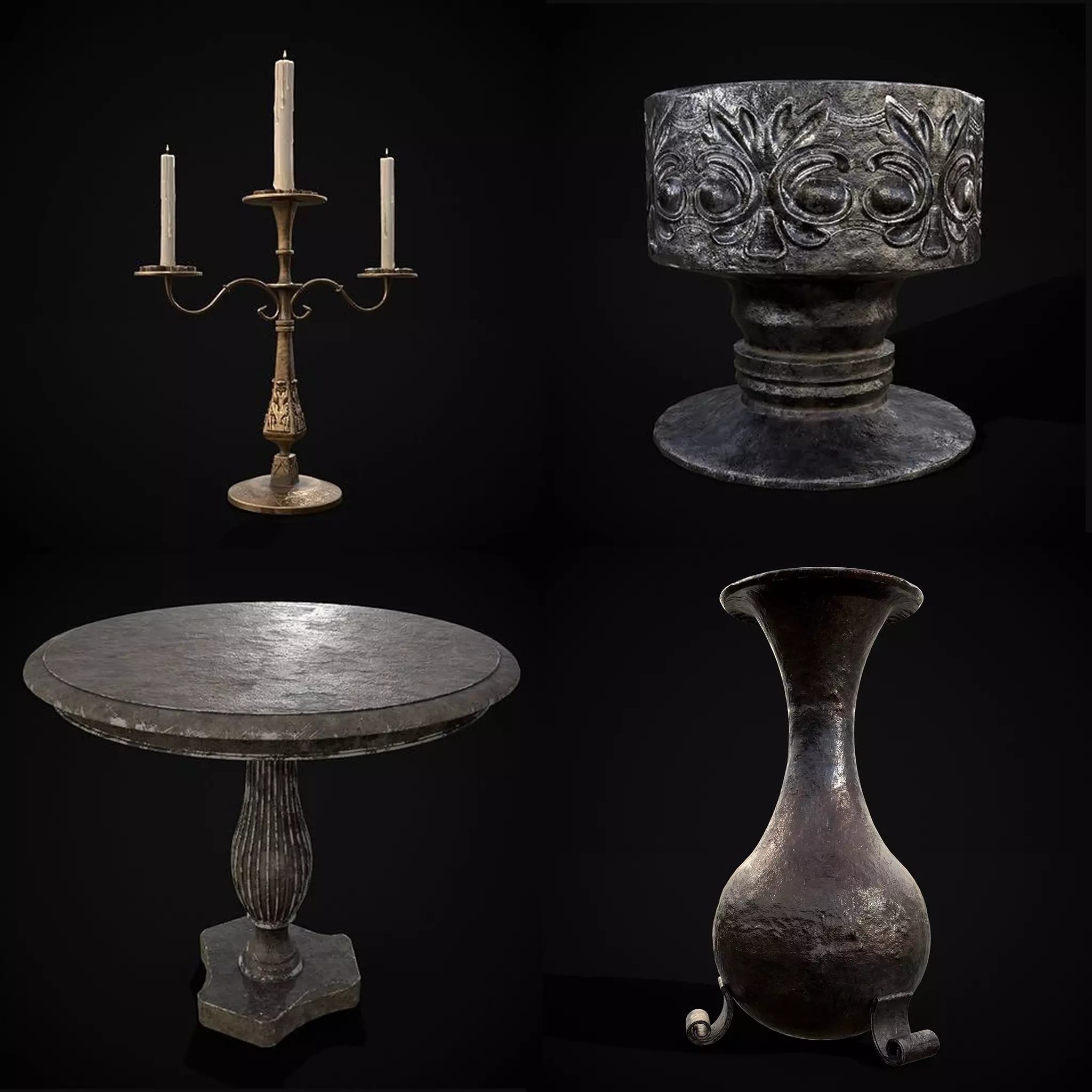 Medieval Prop Mix Fifty Two - 3D Model - Files Include FBX and OBJ. Includes PBR Texture in 4096 x 4096. - Maps include : Basecolor, Normal, Roughness, Height and Metallic. All Preview renders were done Marmoset Toolbag 4 Scaled to real world scale. Customer Service Guaranteed. From the Creators at Get Dead Entertainment. Please like and Rate! Follow us on FaceBook and Instagram to keep updated on all our newest models.