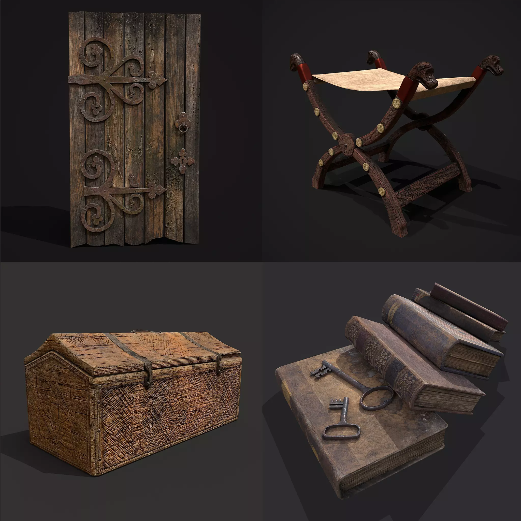 Medieval Props Mix Eight - To see more images of the models please see individual files. 3D Models PBR Texture available in 4096 x 4096 Maps include : Basecolor, Normal, Roughness, Height and Metallic. All Preview renders were done Marmoset Toolbag 4 Scaled to real world scale. Customer Service Guaranteed. From the Creators at Get Dead Entertainment. Please like and Rate! Follow us on FaceBook and Instagram to keep updated on all our newest models.