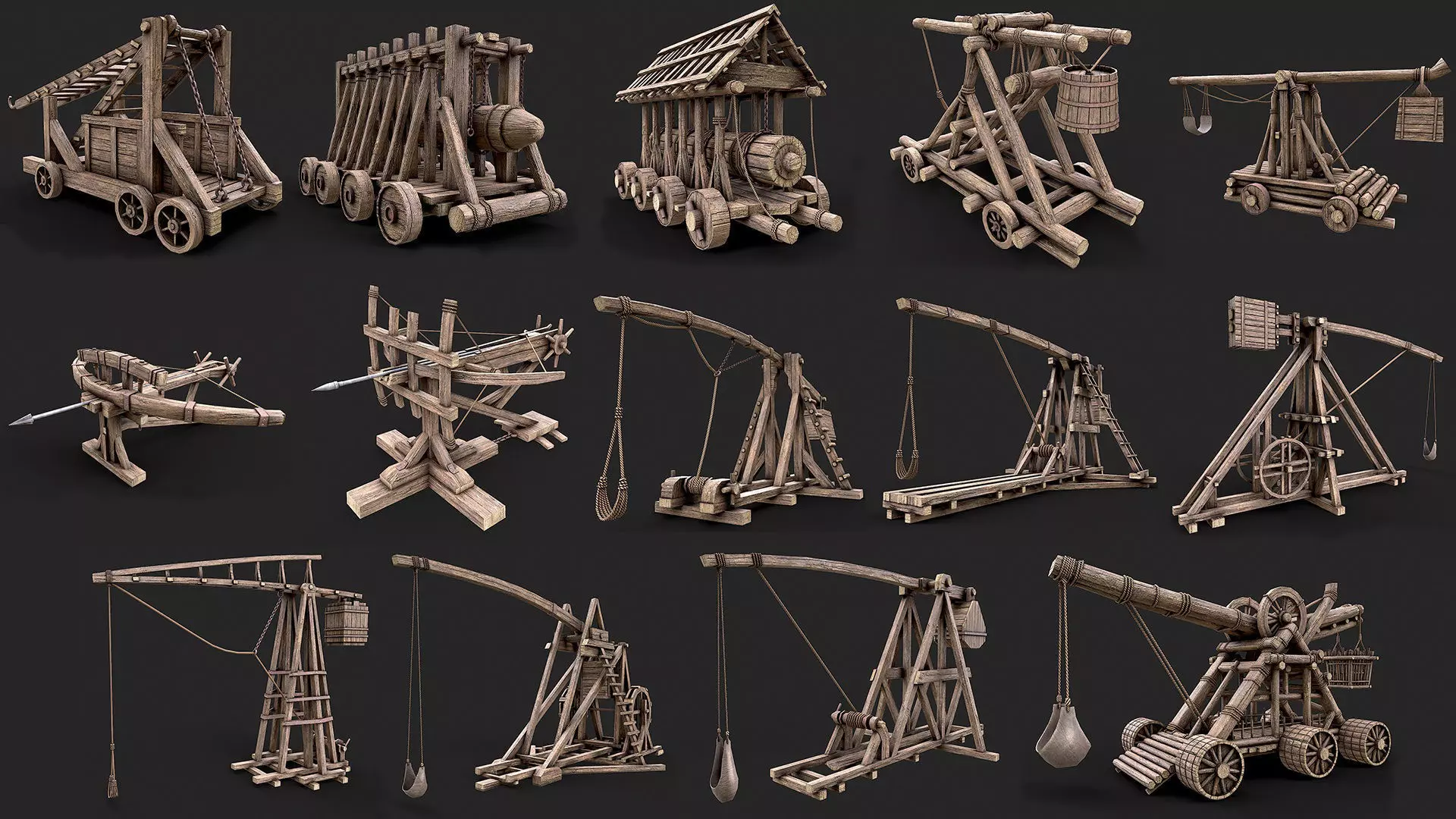 Medieval Siege War Machines PBR Collection 3D Model Pack