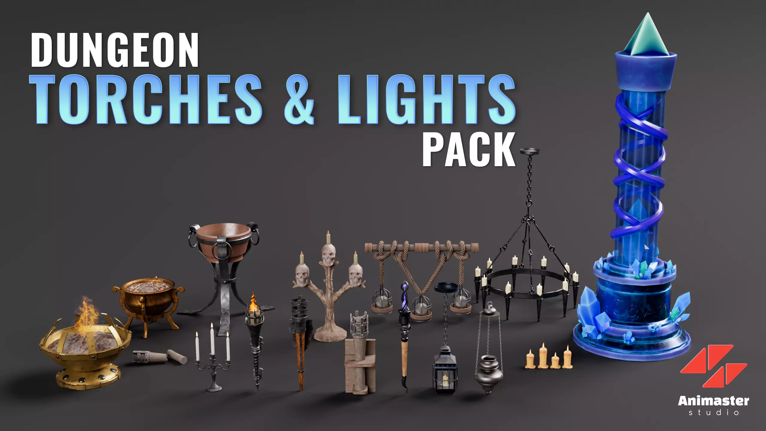 The Medieval Torch Pack is a complete dungeon lighting solution — 16 unique, game-ready 3D props covering every atmospheric lighting need for RPG, dungeon crawler, horror, and dark fantasy game environments. From a crumbling broken torch on the floor to a glowing magic crystal light pillar and an ornate rune brazier with magic flame — this pack gives you the full lighting vocabulary to dress dark stone corridors, gothic crypt chambers, arcane wizard towers, and grand medieval castle halls in minutes. Drop in, light up, done.