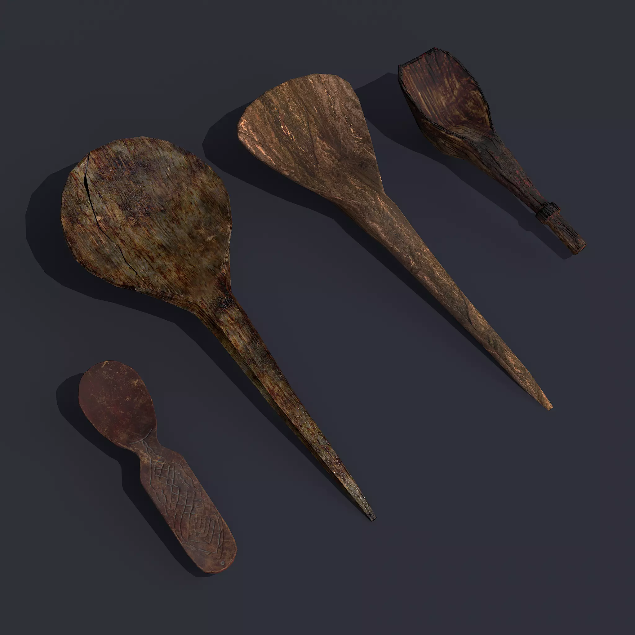 Medieval Wooden Spoons Four Pack 3D Models PBR Texture available in 4096 x 4096 Maps include : Basecolor, Normal, Roughness, Height. All Preview renders were done Marmoset Toolbag 4 Scaled to real world scale. Customer Service Guaranteed. From the Creators at Get Dead Entertainment. Please like and Rate! Follow us on FaceBook and Instagram to keep updated on all our newest models.