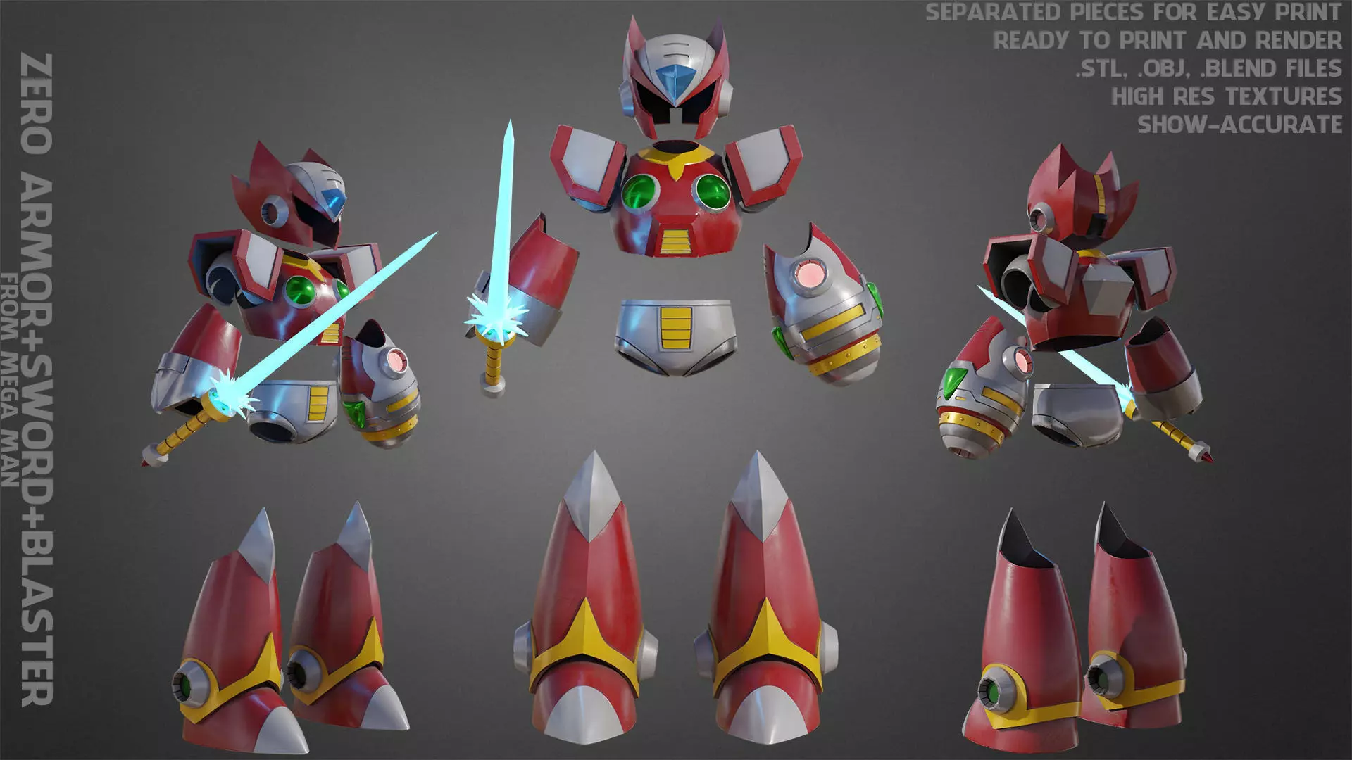 Zero Full Armor with Sword and Blaster from Mega Man ready to print (movie-accurate) real size