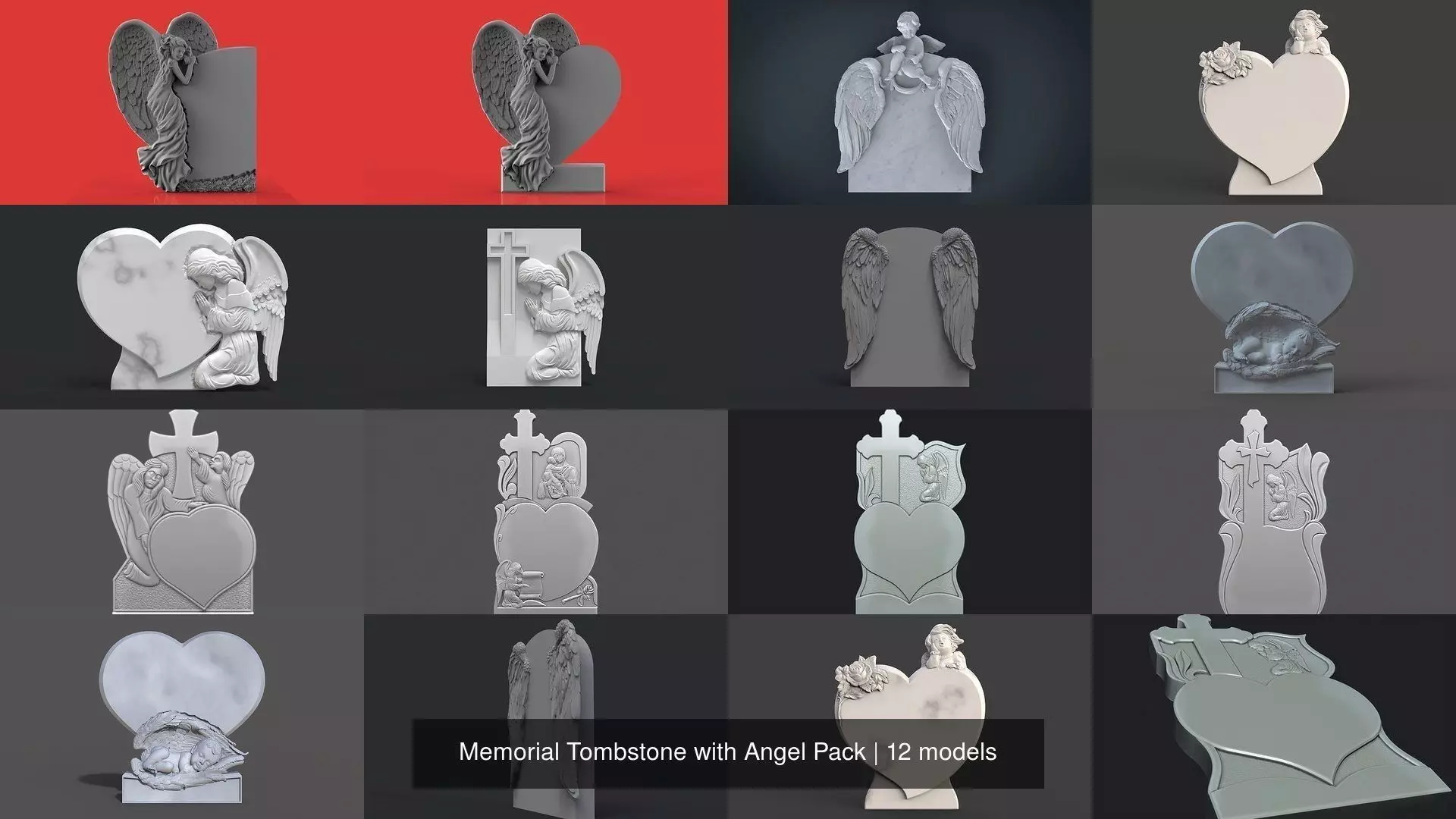 • Monument tombstones 3d model pack. Includes 13 tombstone models.