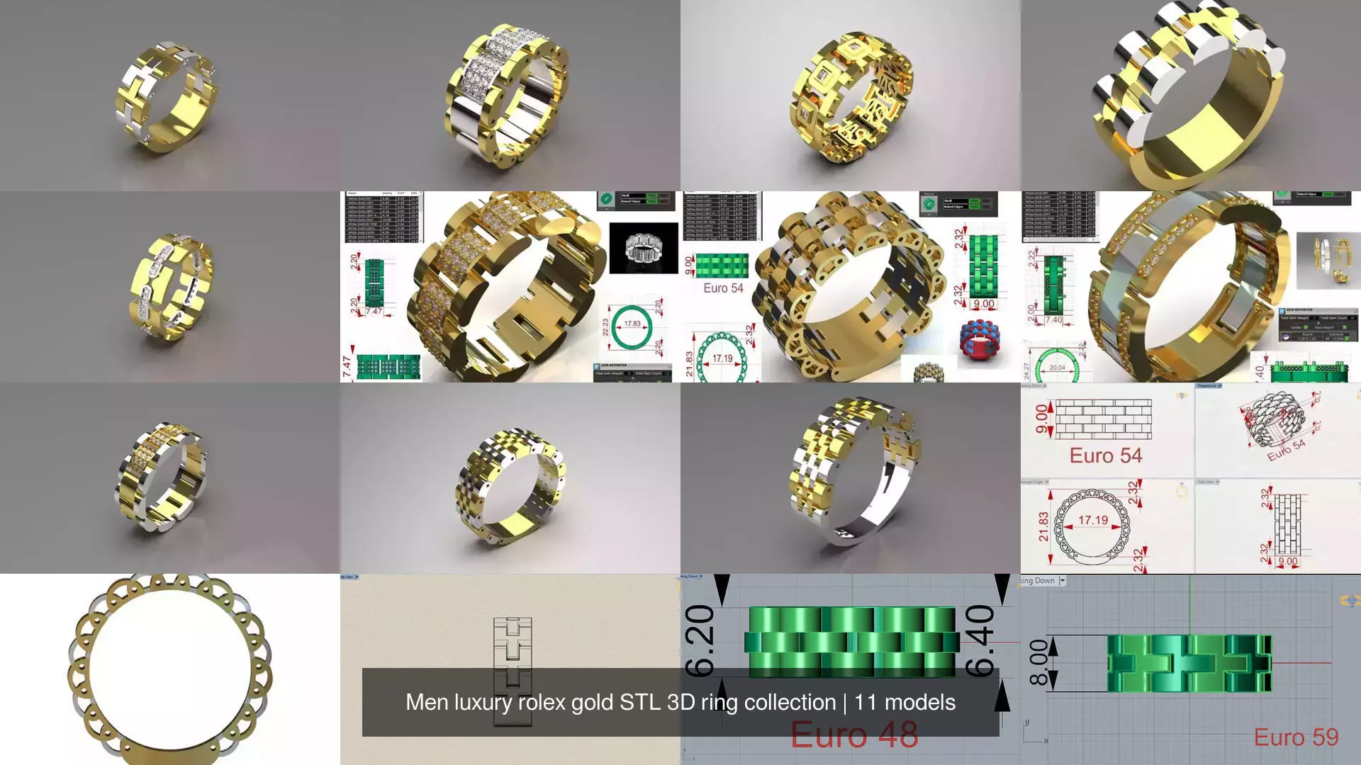 Technical Specifications and Common MaterialsMetal: All models are made with 18K gold (Au 750) in two-tone combinations of yellow and white gold to maximize metallic contrast and setting flexibility. (White gold is rhodium-plated).
