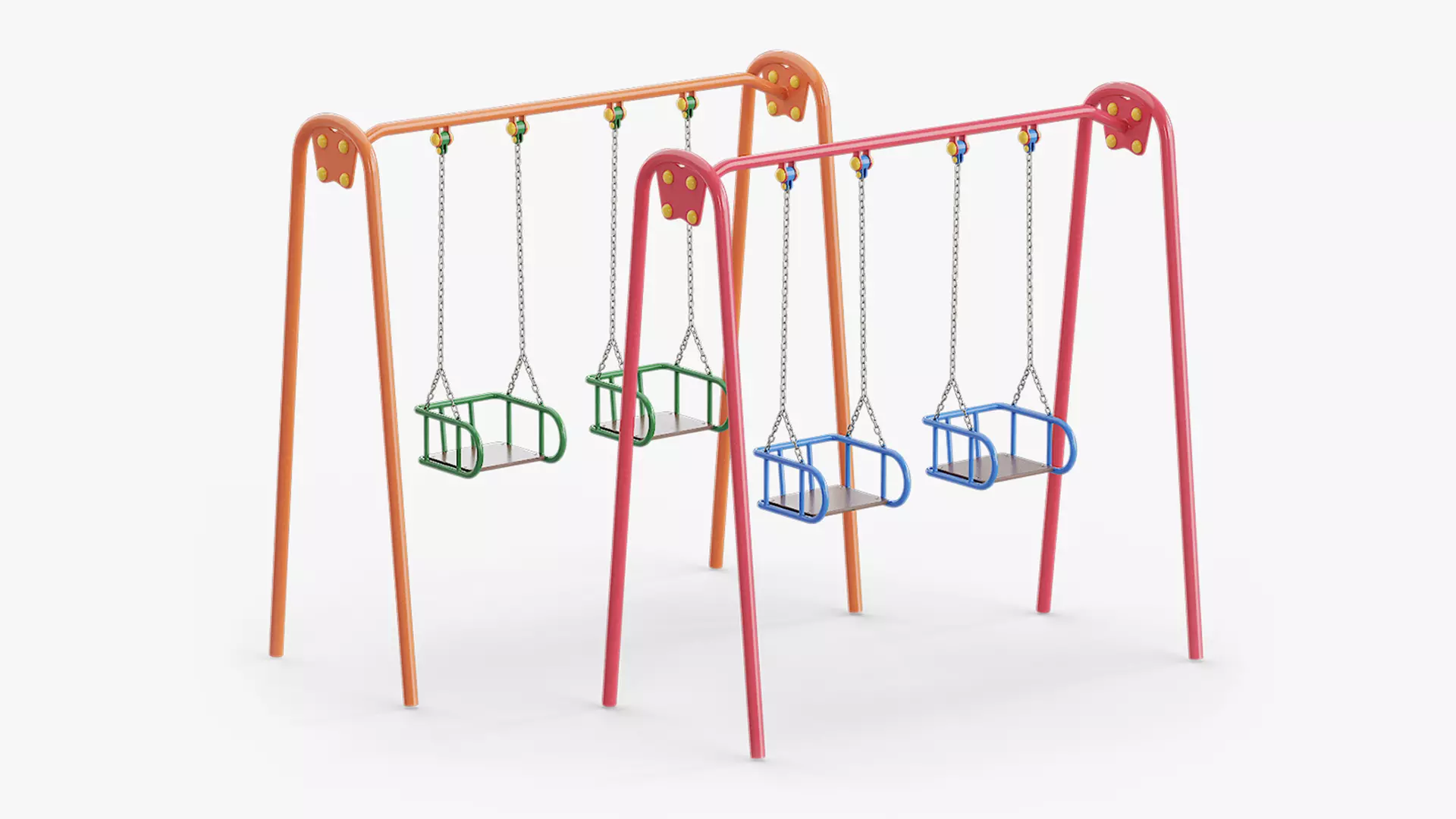 Metal Swing Outdoor 01 Red and Orange. Outdoor environment prop