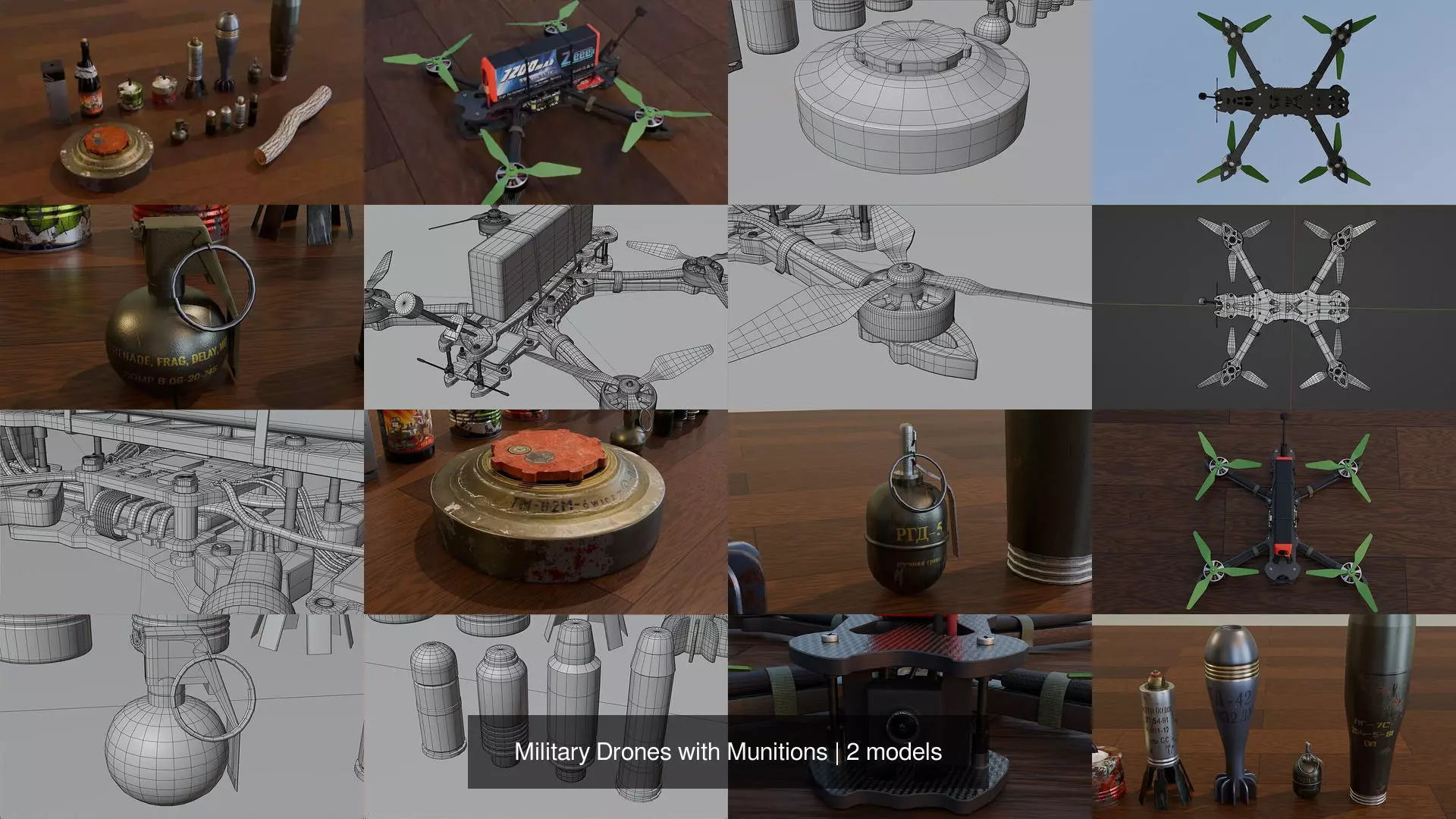The collection features 2 military drones: Vampire bomber and an FPV; and ammunition for the drones (10+ options).