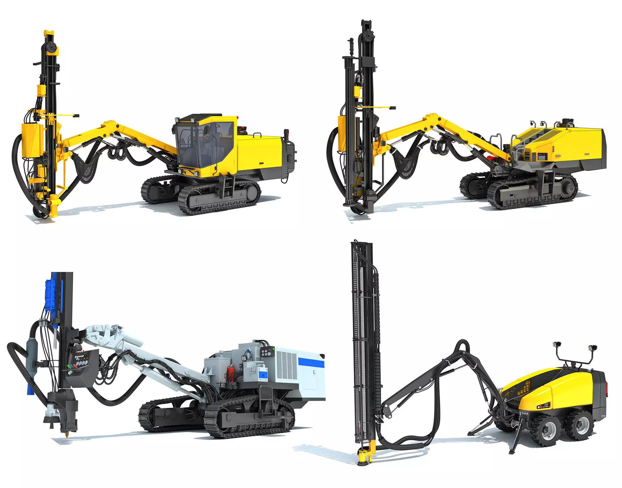 High detailed 4 mining machinery drill rig equipment 3d models.