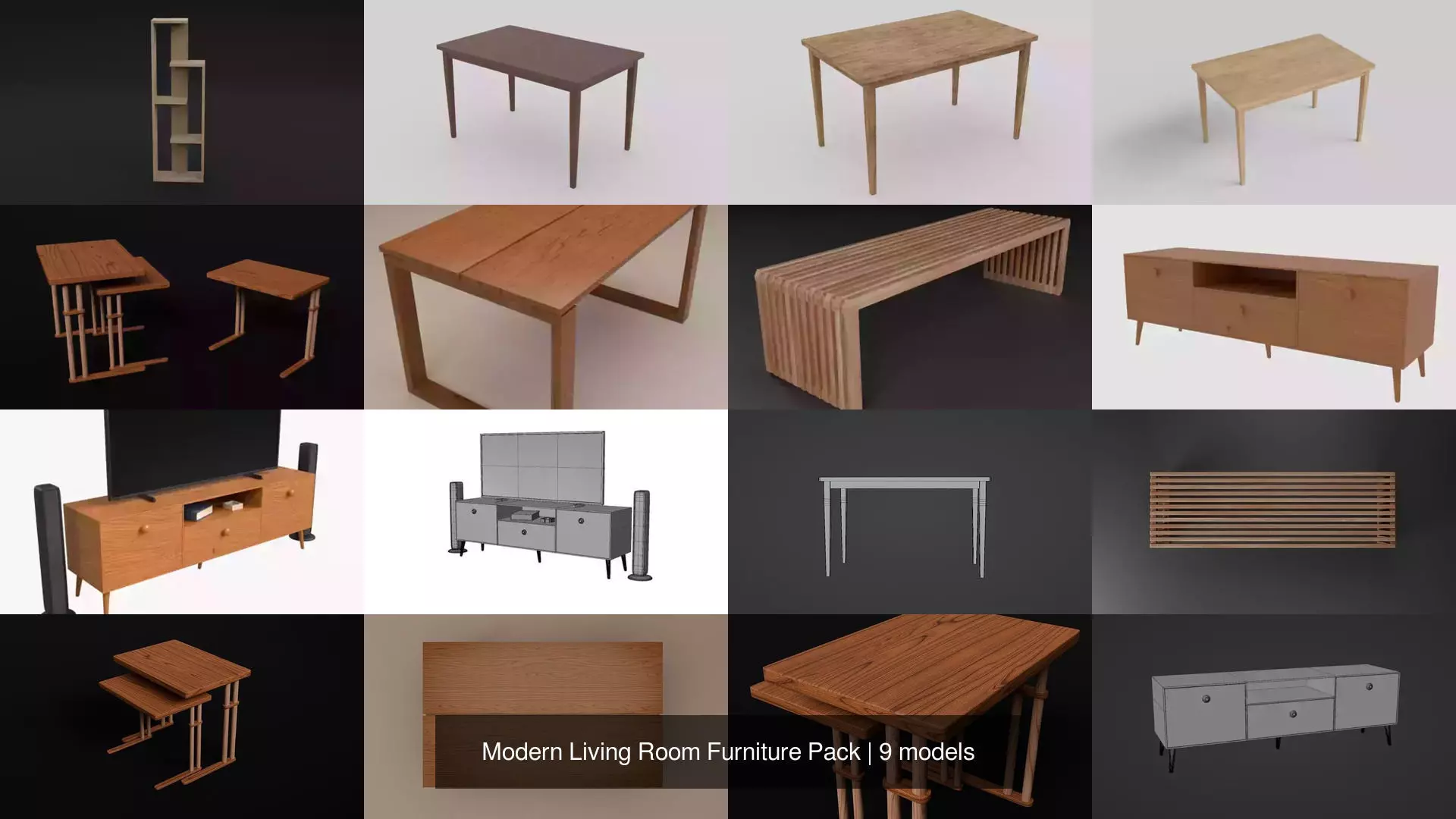 This pack includes 9 high-quality furniture models designed for modern living room interiors.