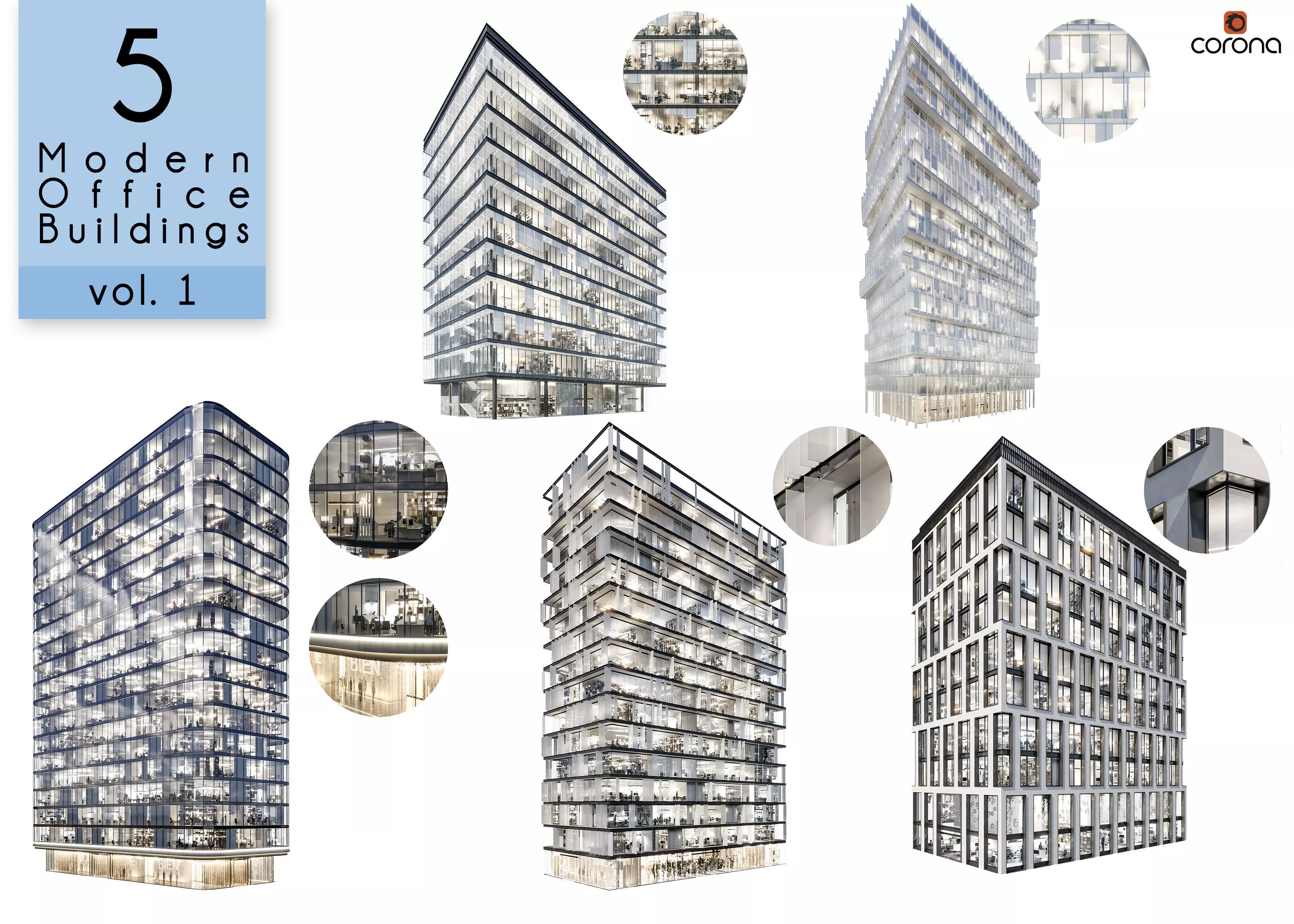 Collection of 5 modern office buildings - Volume 1. You can look up all the details about each building by clicking in the links below: