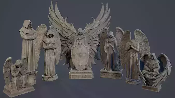 Monk Angel Statue Collection PBR 3D Model Pack