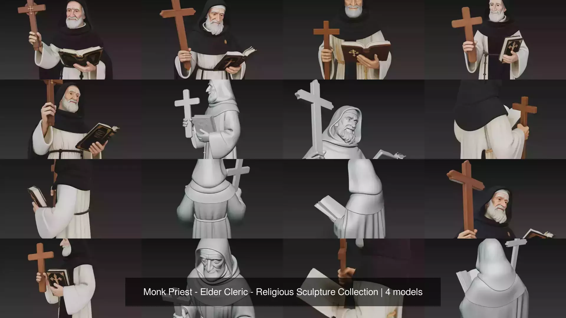 The monks come in different poses and formats, including prayer postures, book-holding gestures, and cross-bearing compositions. All meshes are high-resolution, watertight, and ready for artistic workflows. These assets are excellent for collectors, designers, or creators looking to enrich their libraries with meaningful religious sculptures.