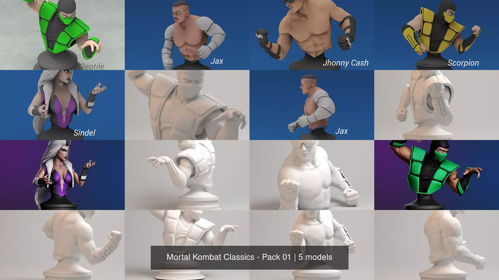 Mortal Kombat is a franchise game that almost every gamer in the world should have played at some point in their life, so I decide to create a collection of fanart for this amazing game. I hope you enjoy this tribute to Subzero, Reptile, Jax, Sindel, Jhonny Cage and Scorpion. Remember this first collection has 5 characters.