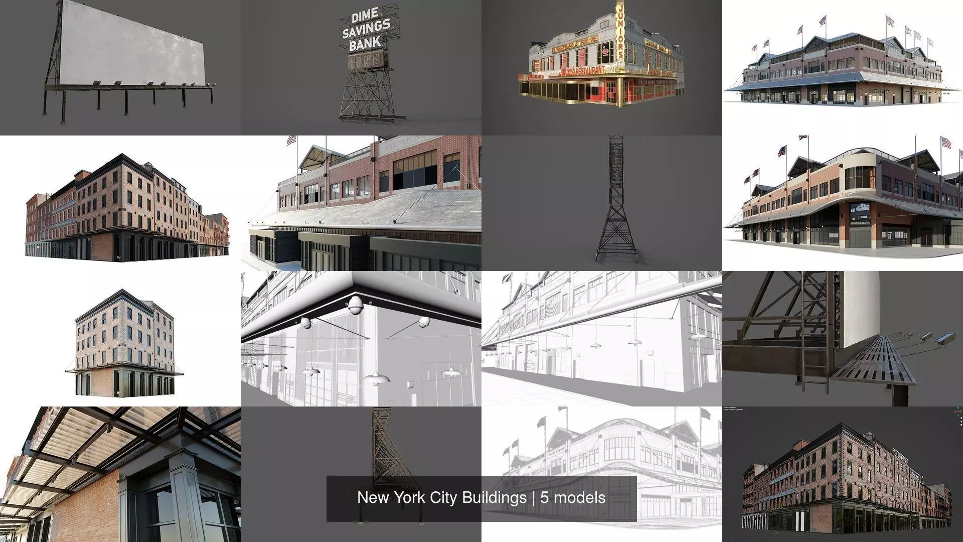 Collection of models from NYC. You can use them to create an urban scene. The restaurant and billboards are PBR ready, while Fulton Market and the city corner are simplified in this regard.