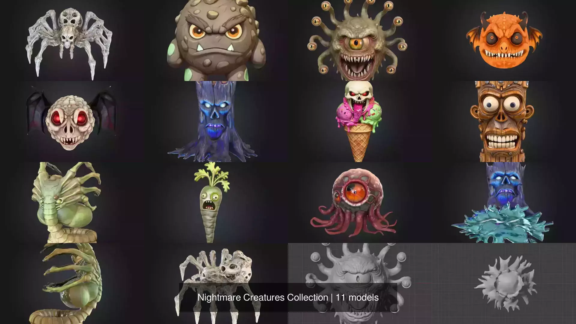 The Nightmare Creatures Collection is a macabre showcase of imagination and terror, bringing together a grotesque ensemble of monsters, demons, and otherworldly beings crafted for horror and dark fantasy worlds. Each creature is uniquely designed to embody a different form of nightmare — from the bizarre and humorous to the deeply unsettling.