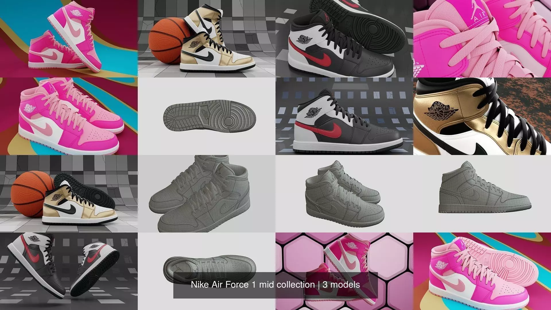 ● Don't miss out on the opportunity to own a high-quality Air Jordan 1 Mid model, primed to showcase your creativity and elevate the quality of your project. This is undoubtedly an excellent choice for those seeking a versatile 3D shoe model for various purposes.