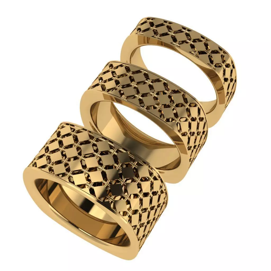 Noir Depth Trio — a sculptural jewelry set consisting of three cast‑ready rings designed with sequential carved heights: