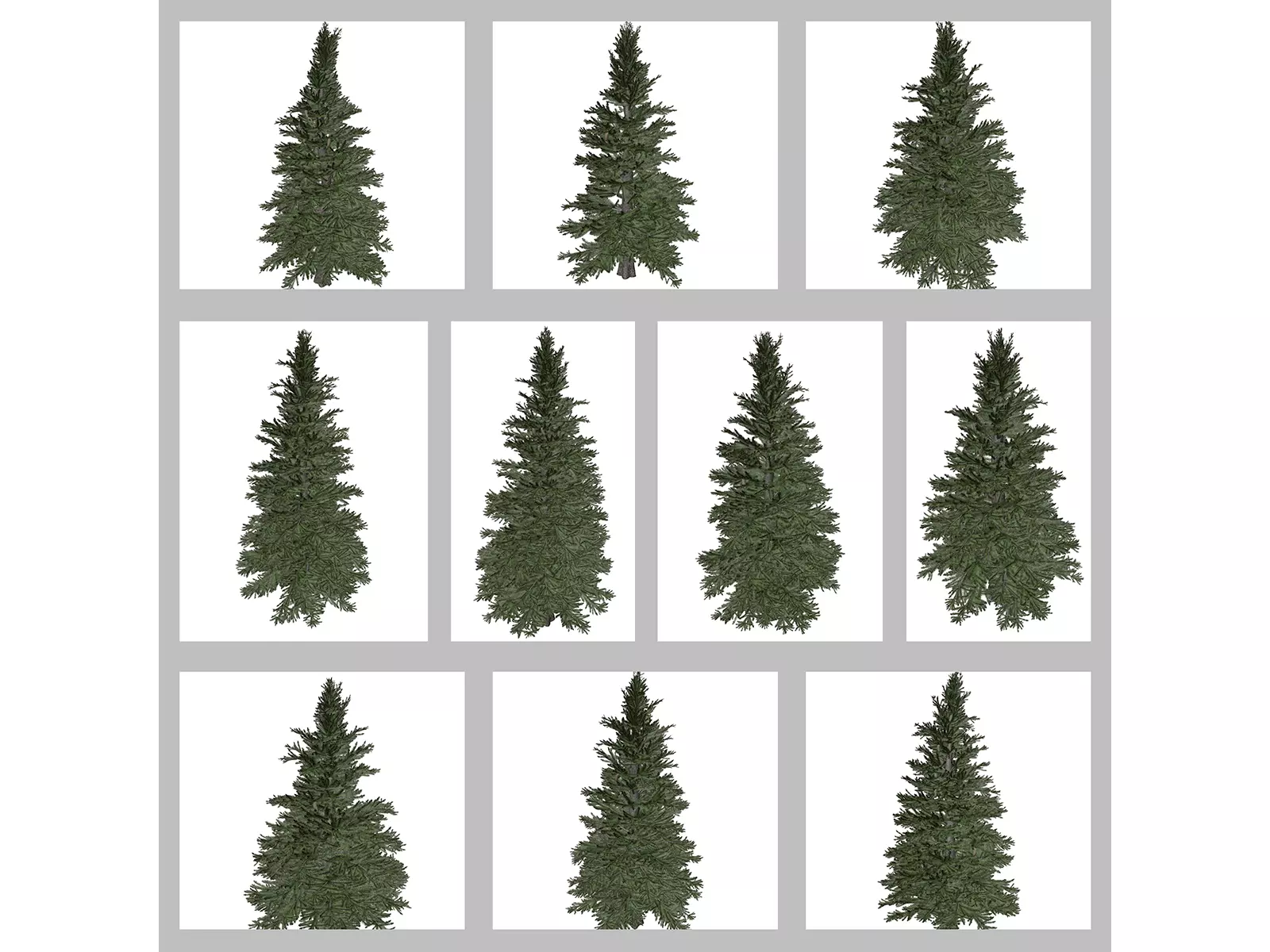 A collection of 10 realistic 3D models of Norway Spruce Trees.