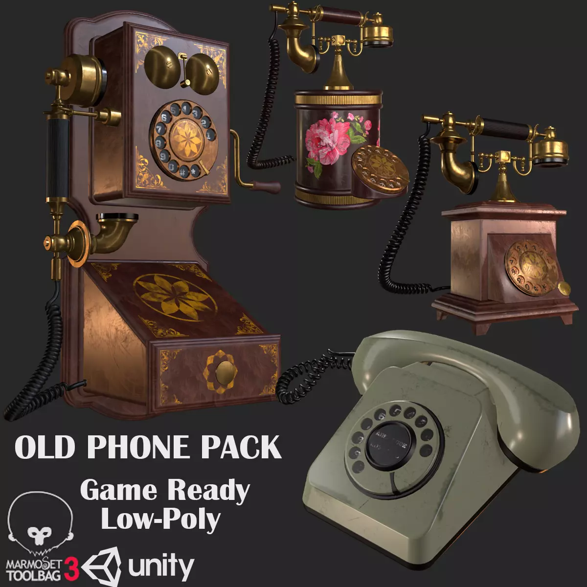 Old Phone Pack High Quality 3D Model ( Ready for Games AR/VR and Visualization)